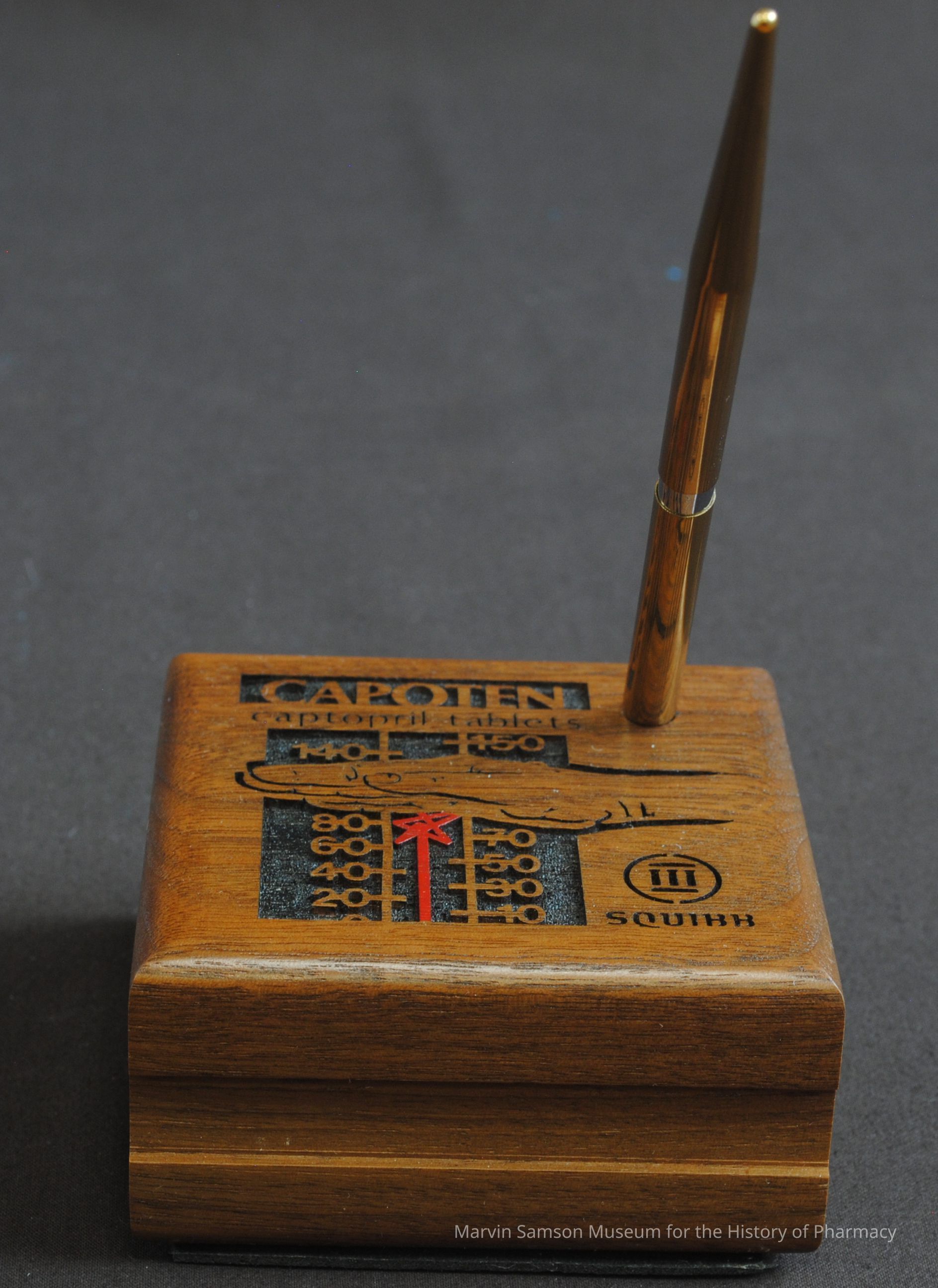 Wooden pen holder advertising Capoten (captopril tablets)Context