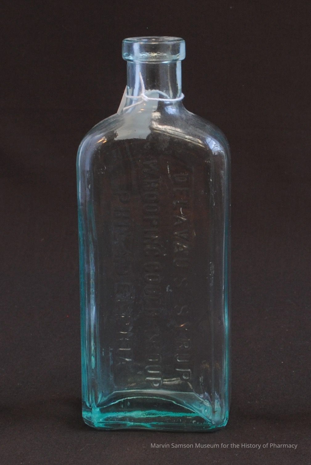 Empty glass Delavau's Whooping Cough Croup Syrup bottleContext
