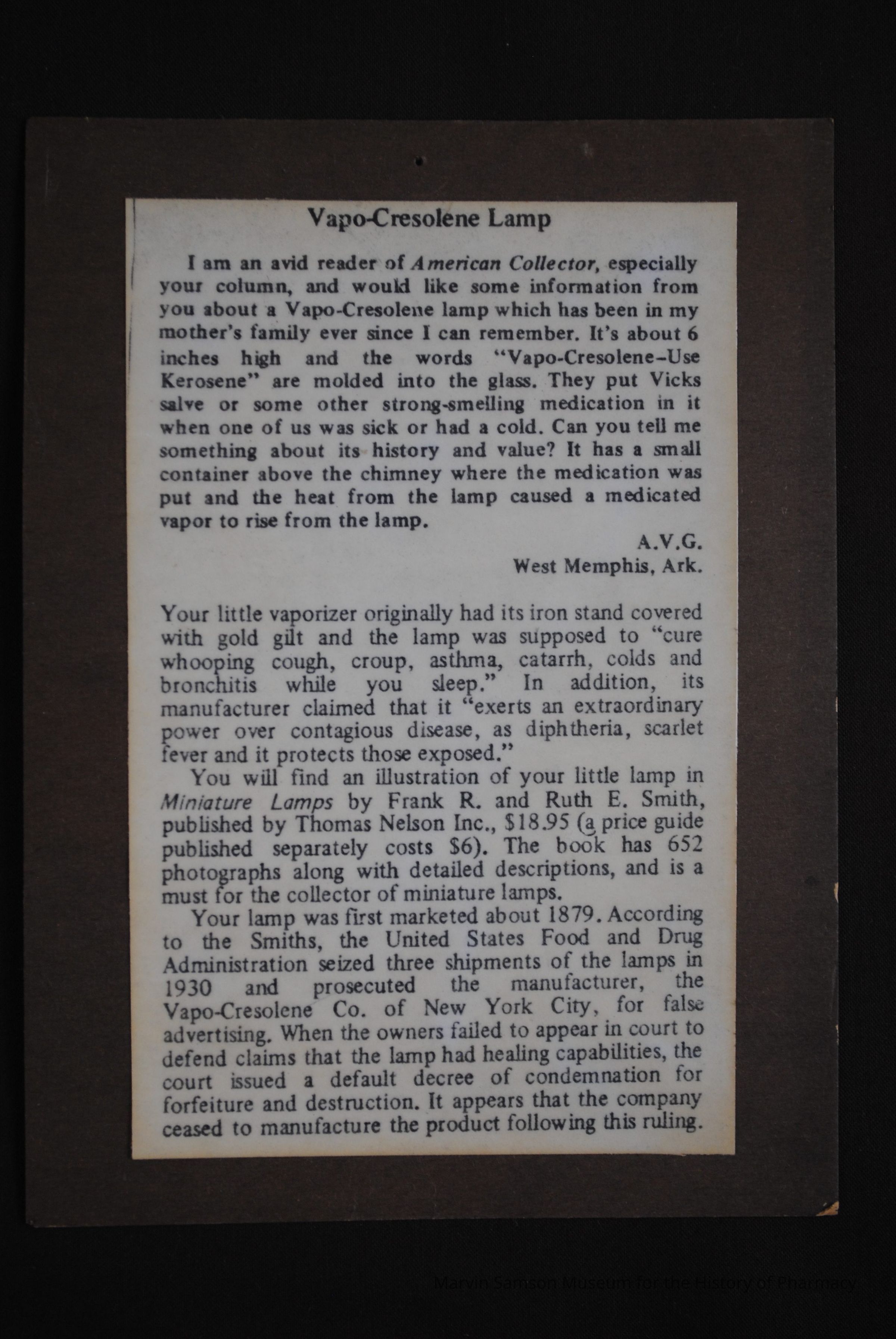 Vapo-Cresolene CompanyDate made