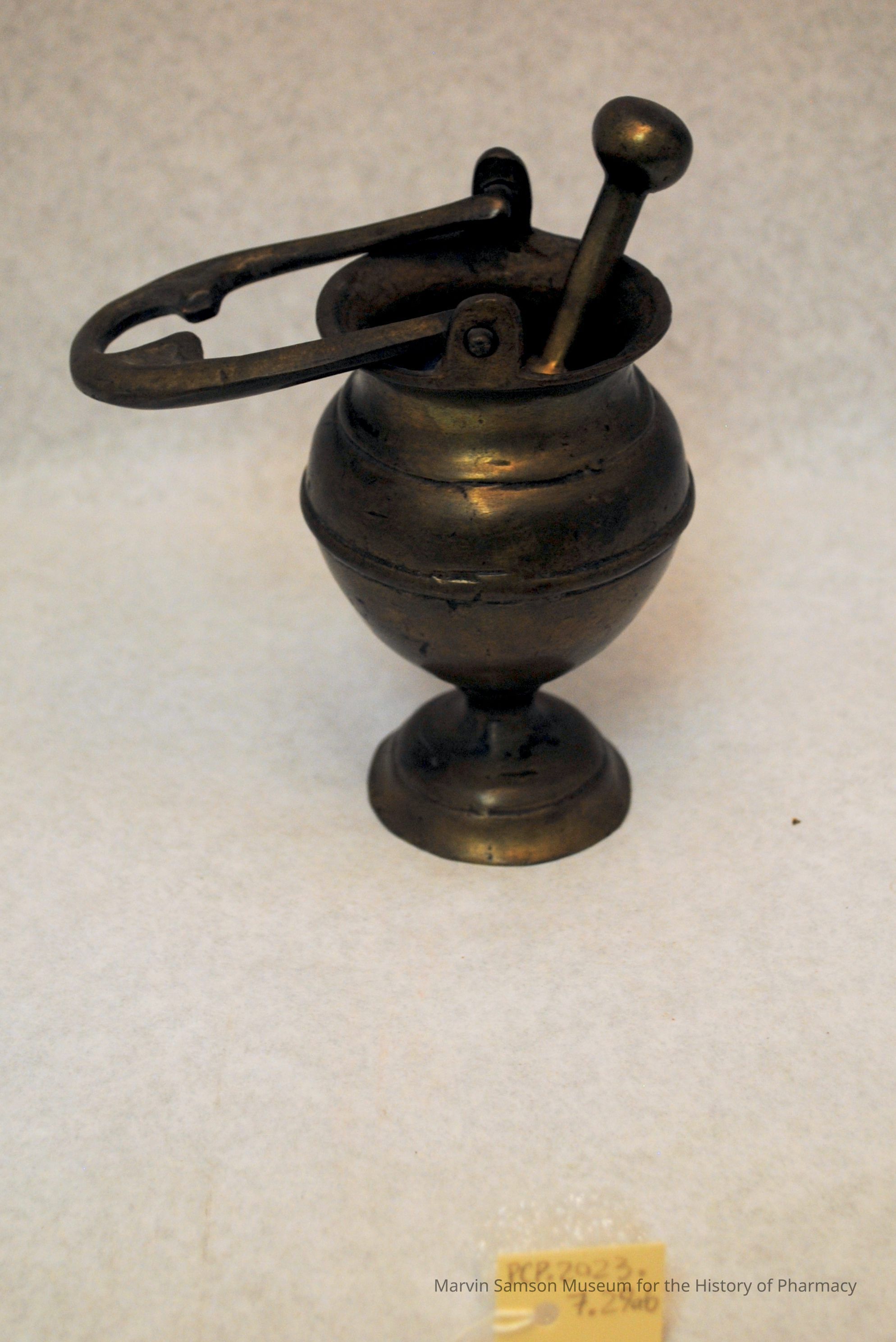 Brass mortar and pestle, probably the Near East or Spain, late 19th centuryMade/Created