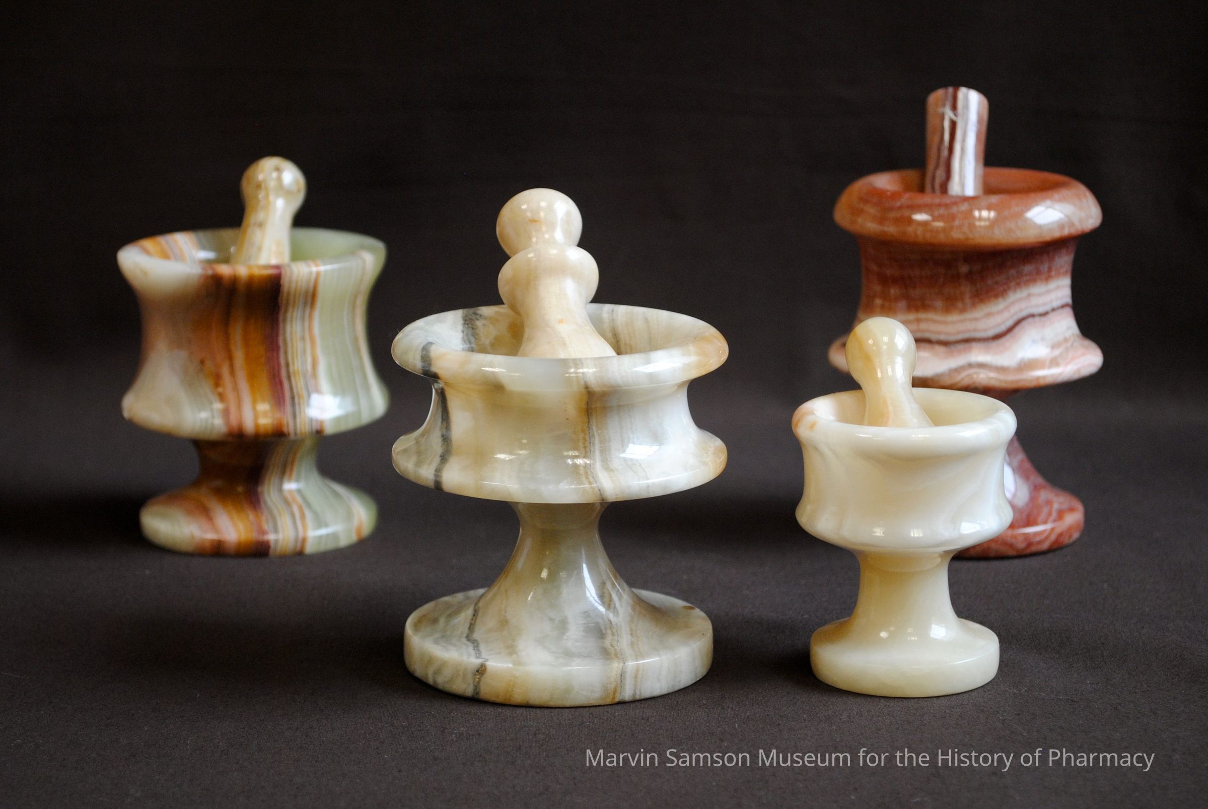 From Alan Strauss' 'A Collection of Mortar and Pestle Sets,' p.20: "These alabaster mortar and pestle sets were purchased at a souvenir market in Istanbul and Cairo. More than likely they are used to make Turkish coffee, a mixture of finely ground coffee beans and hot water, which forms a very thick suspension."Collection