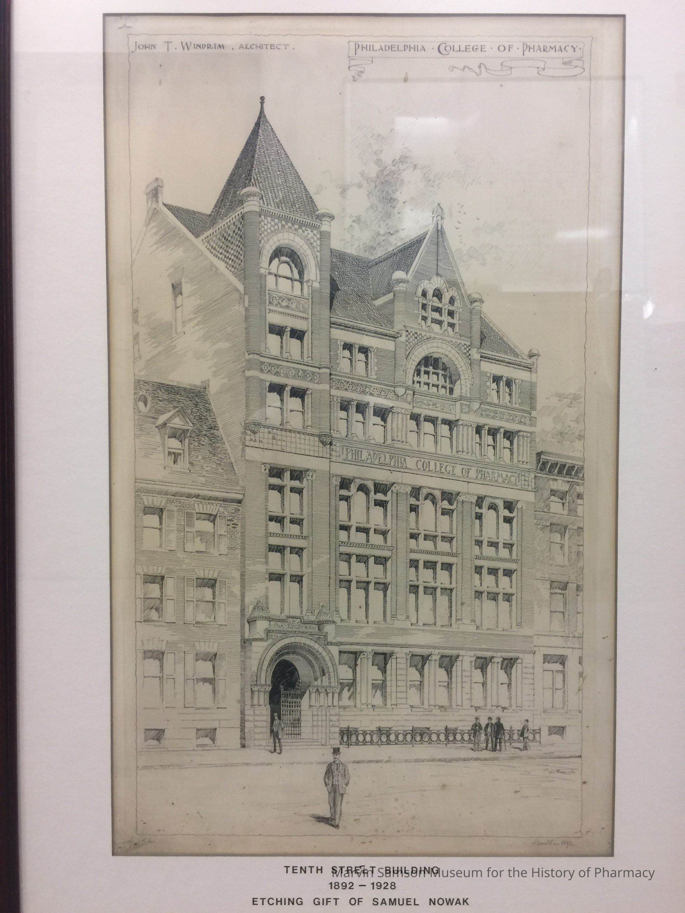 Etching print of tenth street building, Philadelphia College of Pharmacy.Type of Print
