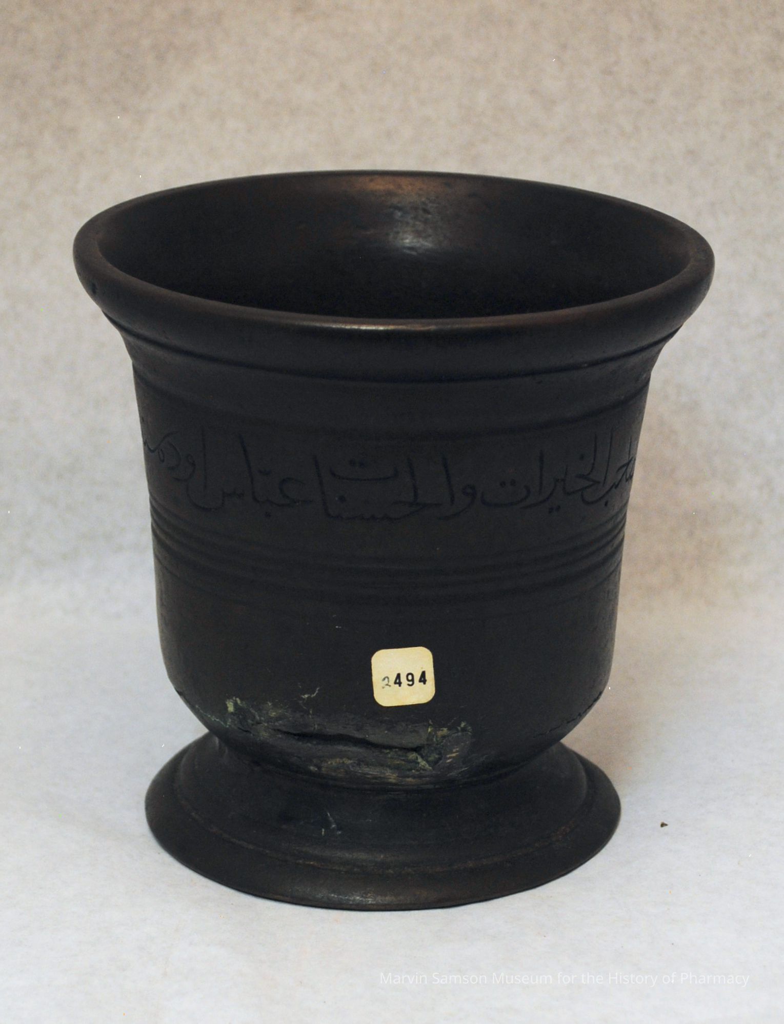 Bronze mortar with Arabic inscription around the upper portion of the vessel; Turkey, 1724Category