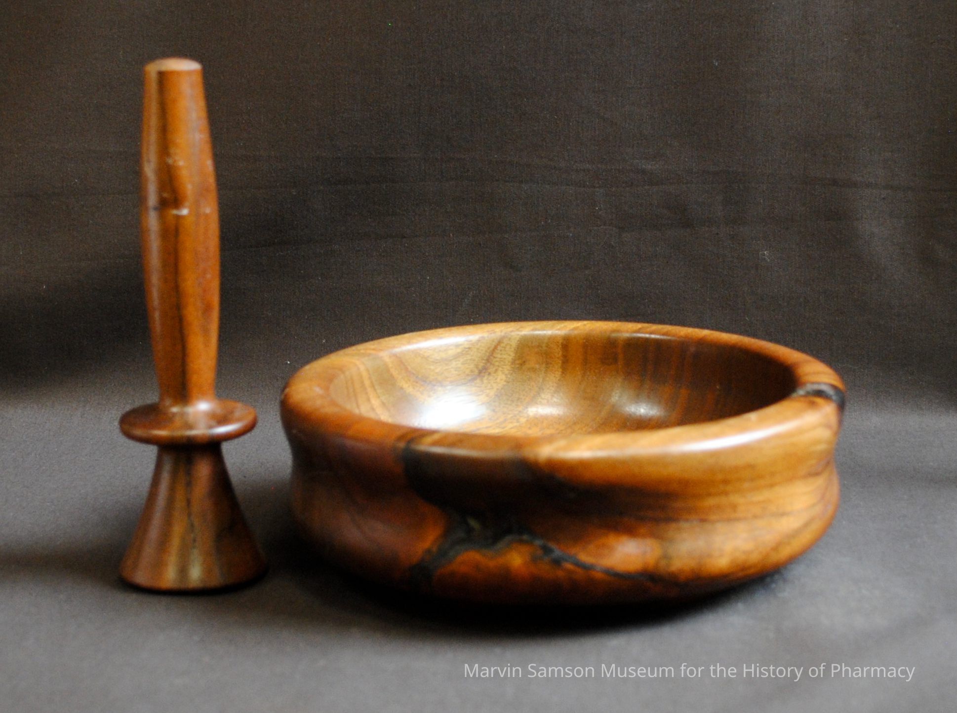Rounded wooden mortar and pestle with flat endCollection