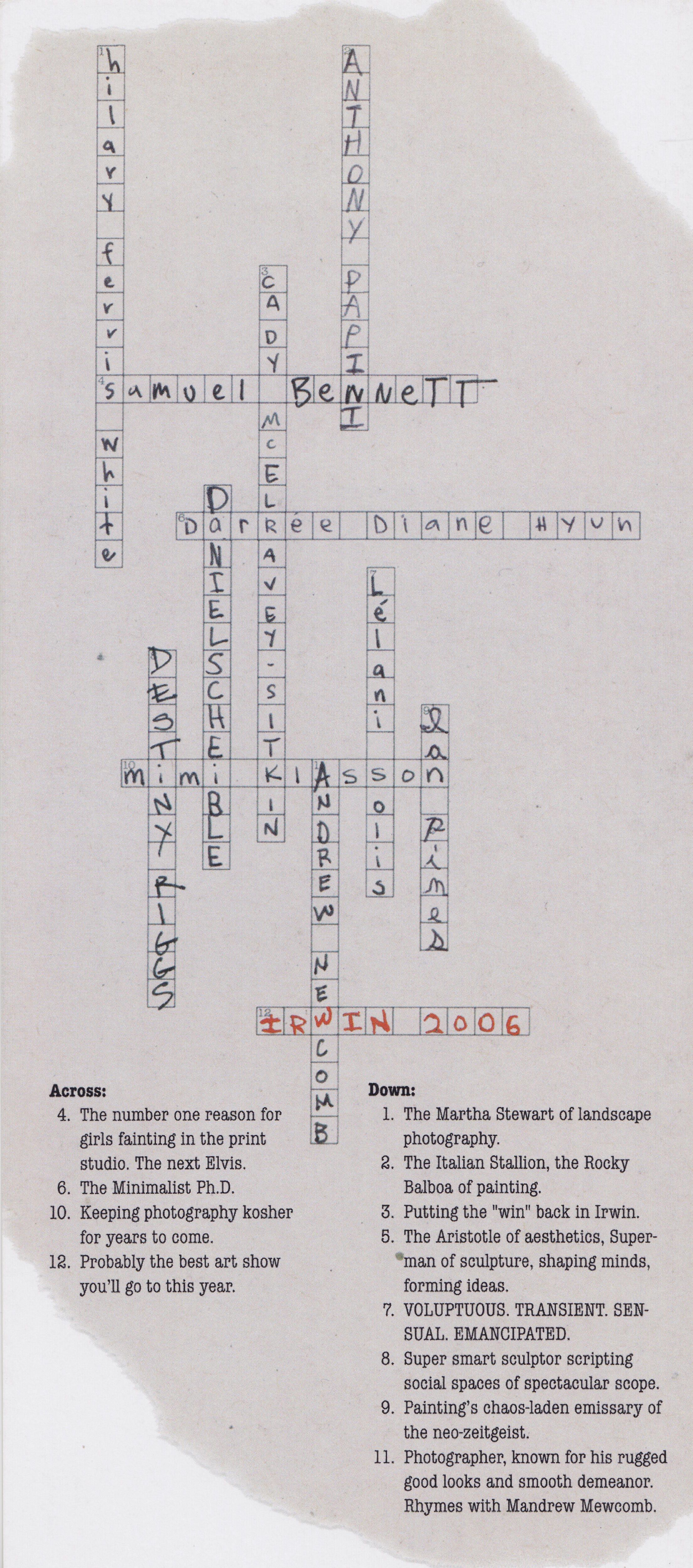 The William Hyde and Susa Bentenn Irwin Scholarship awards are granted to undergraduate UCSC students for proven excellence in the arts. The Sesnon Gallery's Annual Exhibition will feature 2006 recipients working in a variety of media including painting, photography, Printmaking, Sculpture and intermedia.