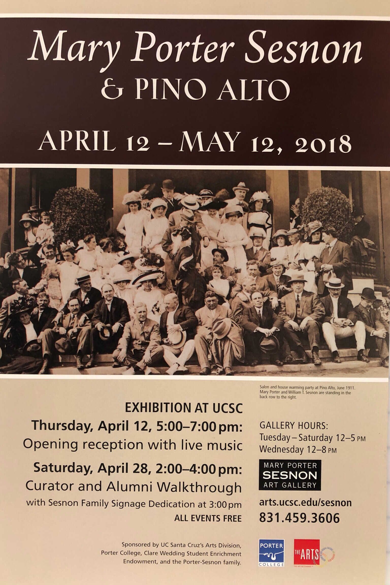 The exhibition contains many sketches and watercolors from an historic scrapbook made during parties or salons, calligraphy by Ms. Sesnon, along with paintings by California artists Will Sparks, Ferdinand Burgdorff, Haig Patigian, Frank Unger, Charles Dickman, Margaret Rogers, Leonora N. Penniman, and Cor de Gavere. The work of Ms. Sesnon’s great-granddaughter, Molly Porter Cliff Hilts (Porter College ’81), and other Sesnon family members is included in the exhibition. April 12 - May 12, 2018