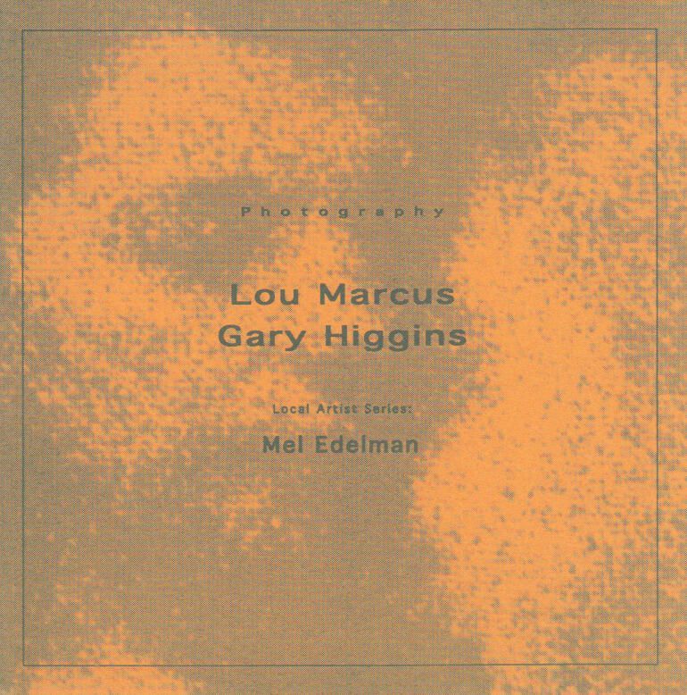 Murky orange and black background of a persons facing another person. Grey detailing around the boarder. Includes the artists involved.
