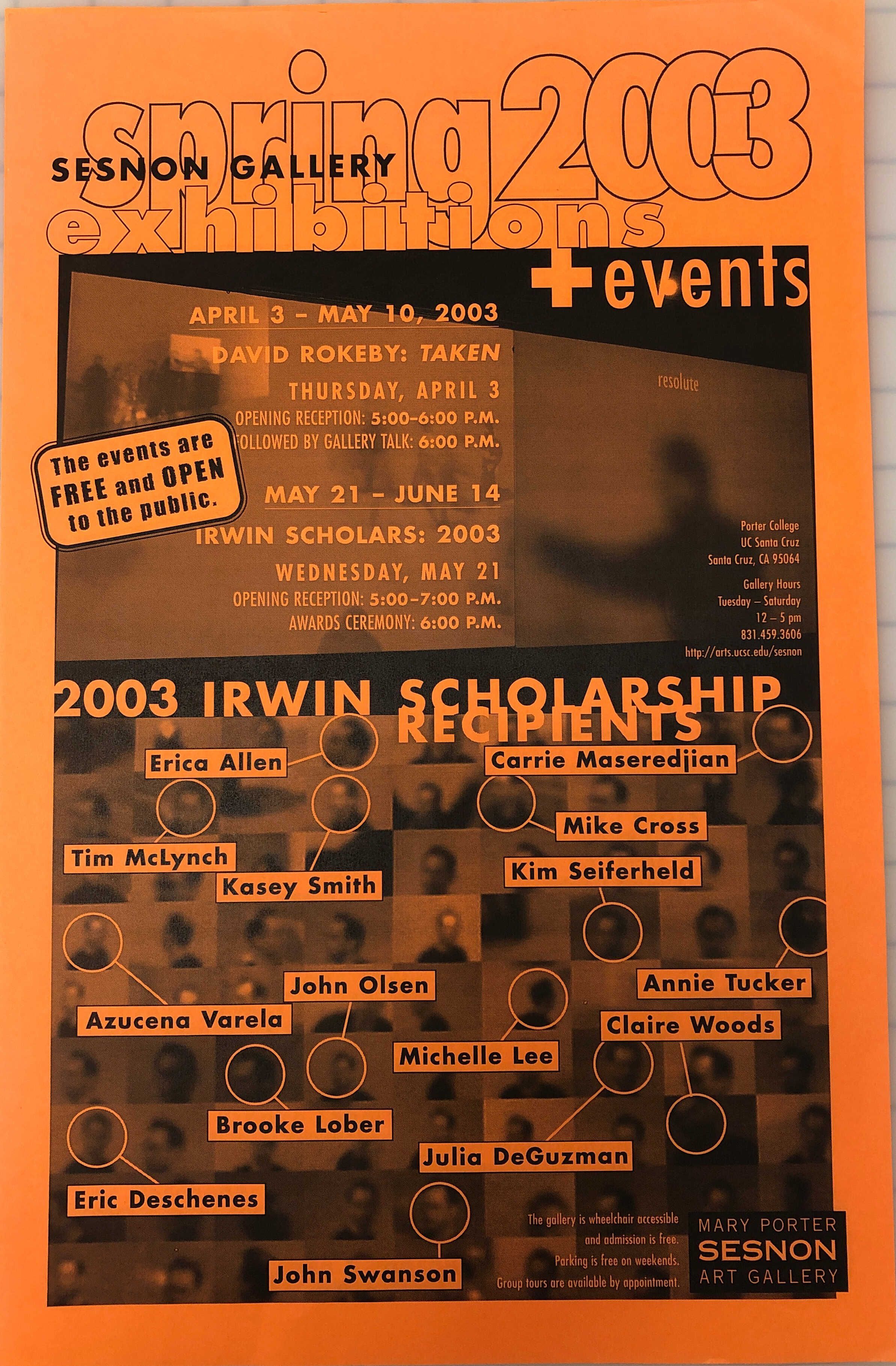 Events for spring 2003 and irwin