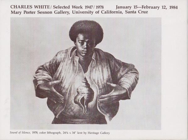 White background with black text. The name, date, and location of the exhibition are listed at the top of the postcard. Underneath is the color lithograph "Sound of Silence."