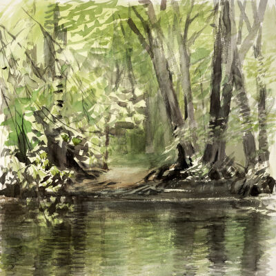 Concord River landscape by Lars Jonsson, watercolorDimensions