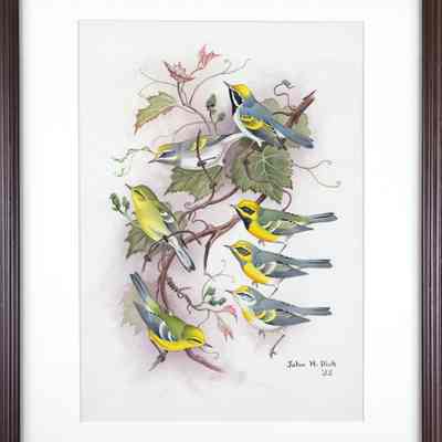 Blue-winged and Yellow-winged Warblers by John Henry Dick, watercolorArtwork Details