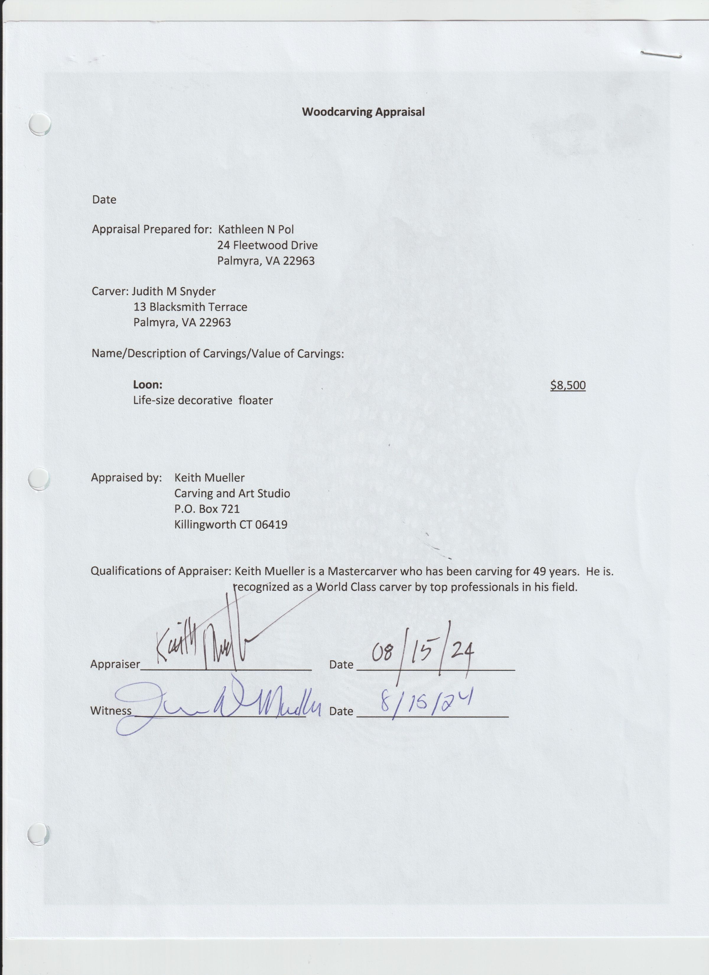 Common Loon carving by Judith M. Snyder