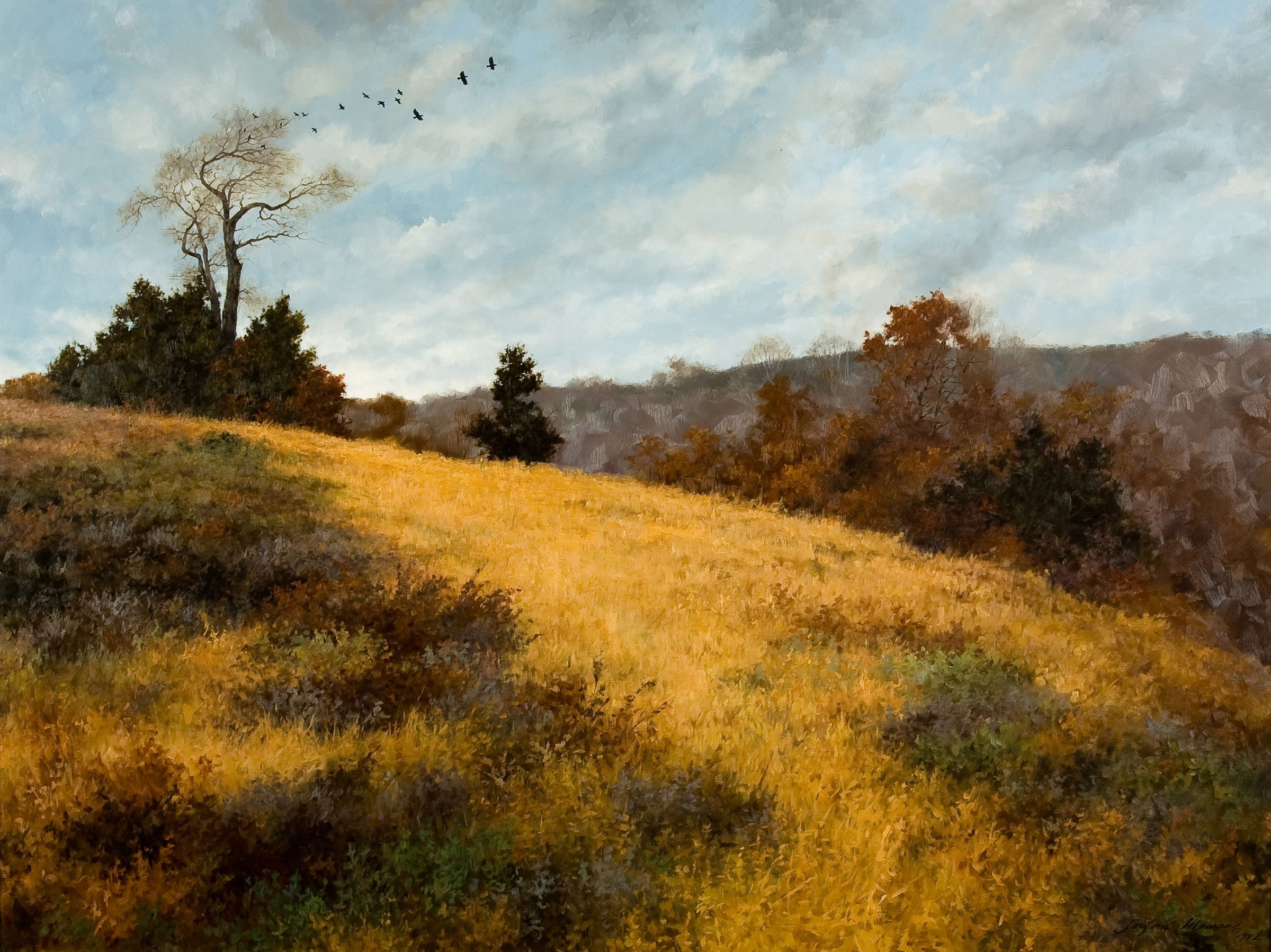 American Crows in landscape by Lanford Monroe, oilArtwork Details