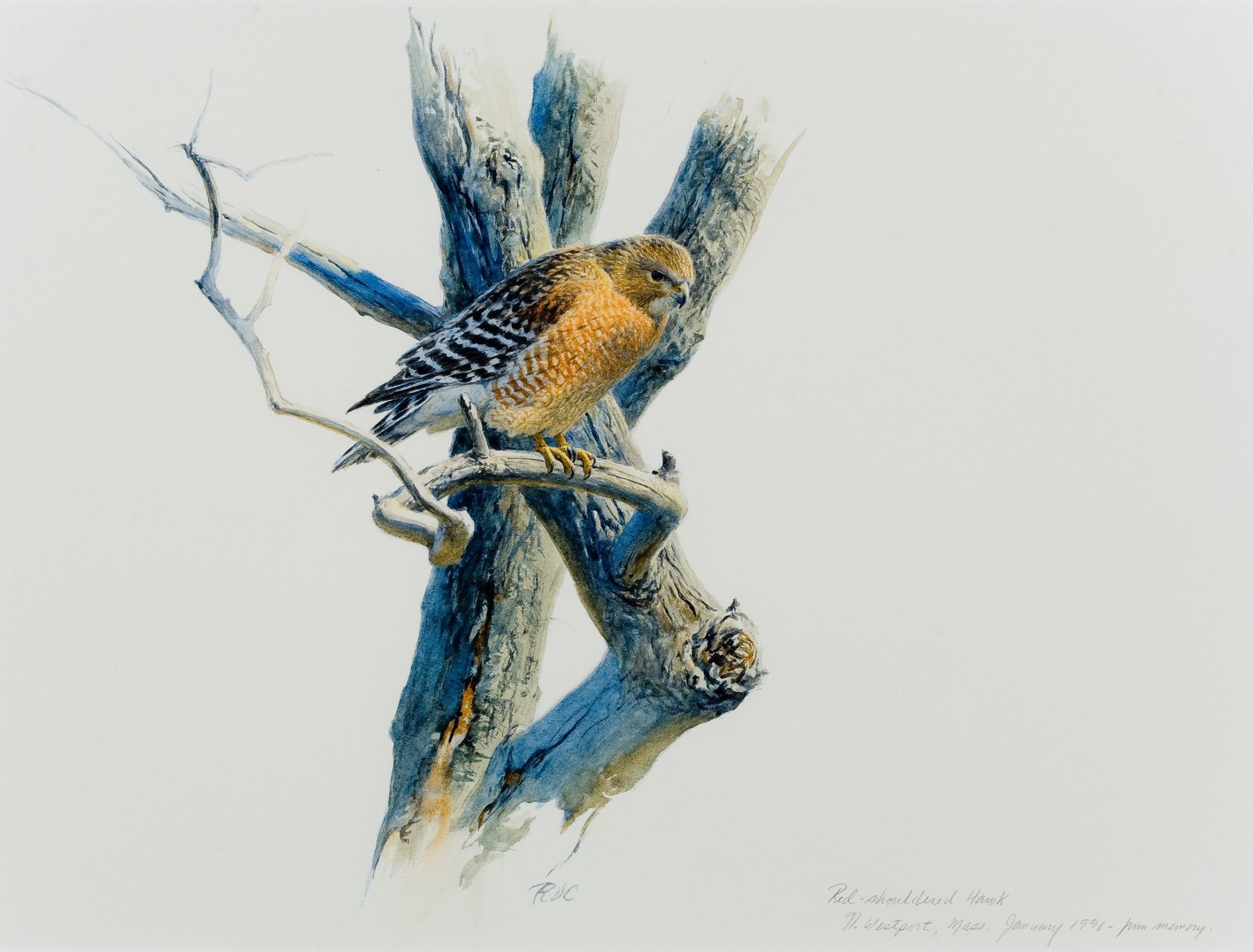 Red-shouldered Hawk by Robert V. Clem, watercolorArtwork Details