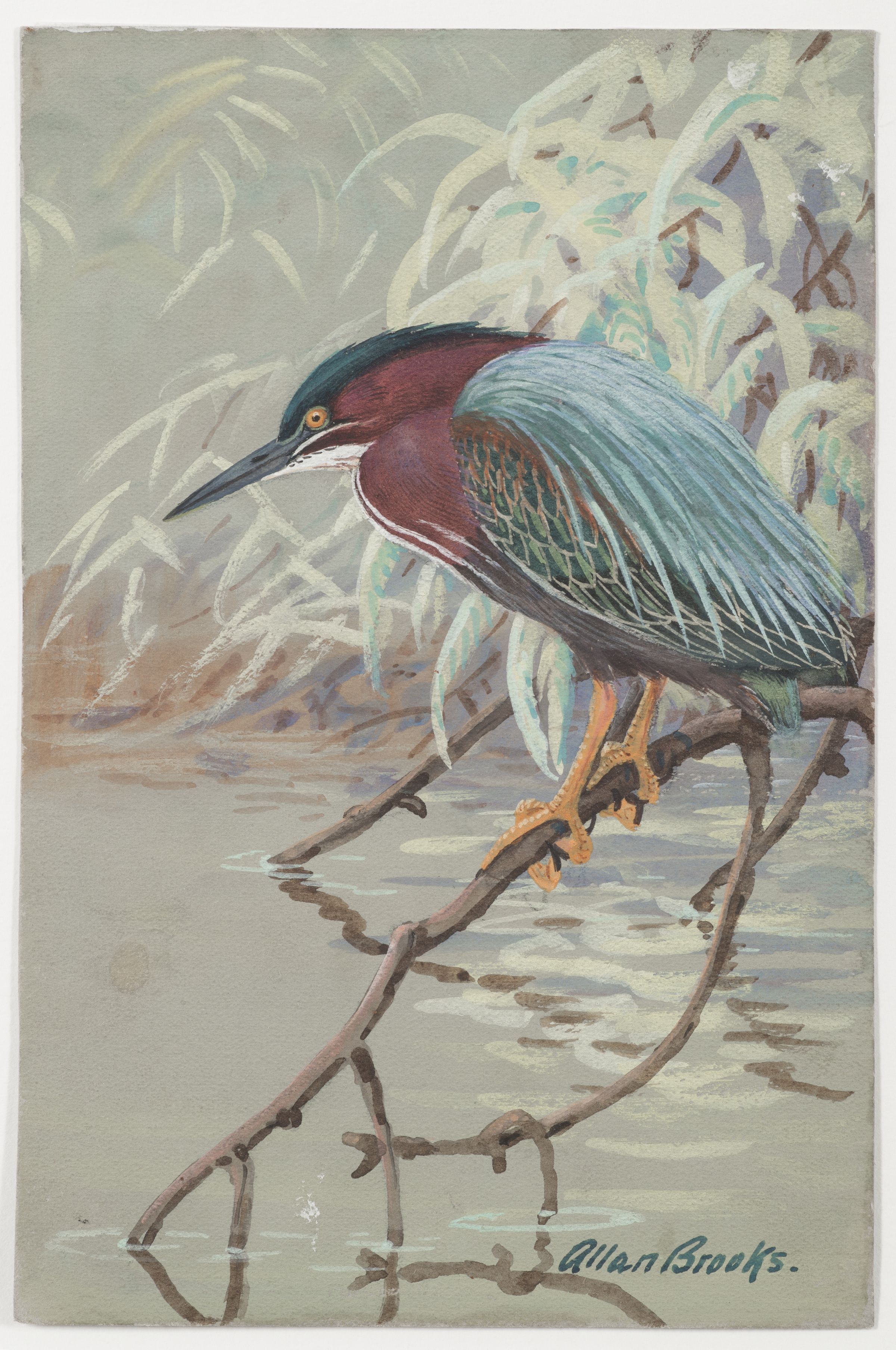 Green Heron by Allan C. Brooks, watercolor for bird ID cardArtwork Details