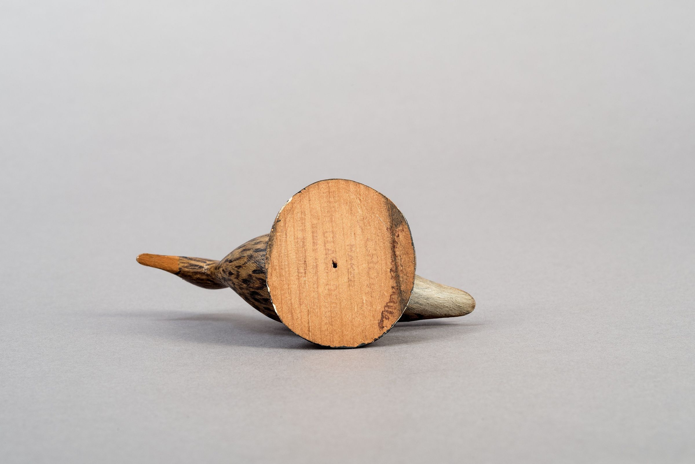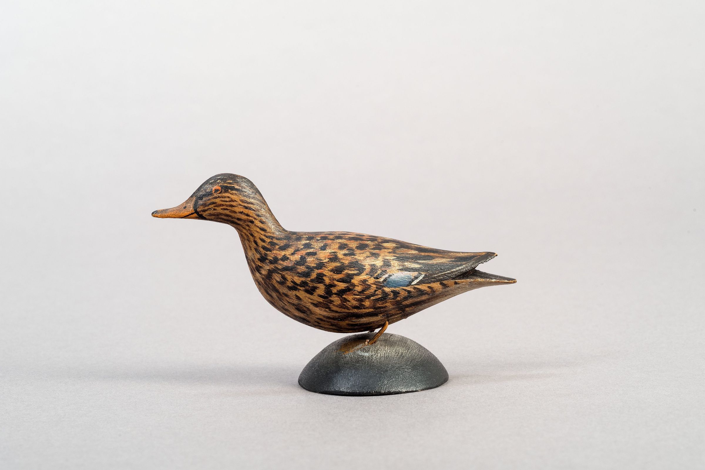 Gigi Hopkins: Part of a group of six with oval ink stamp (rare mark). Stamp visible with "Female Mallard" written in brown ink on underside of base. Oval base. Early eye, small feet, well blended paint, nice brushwork.