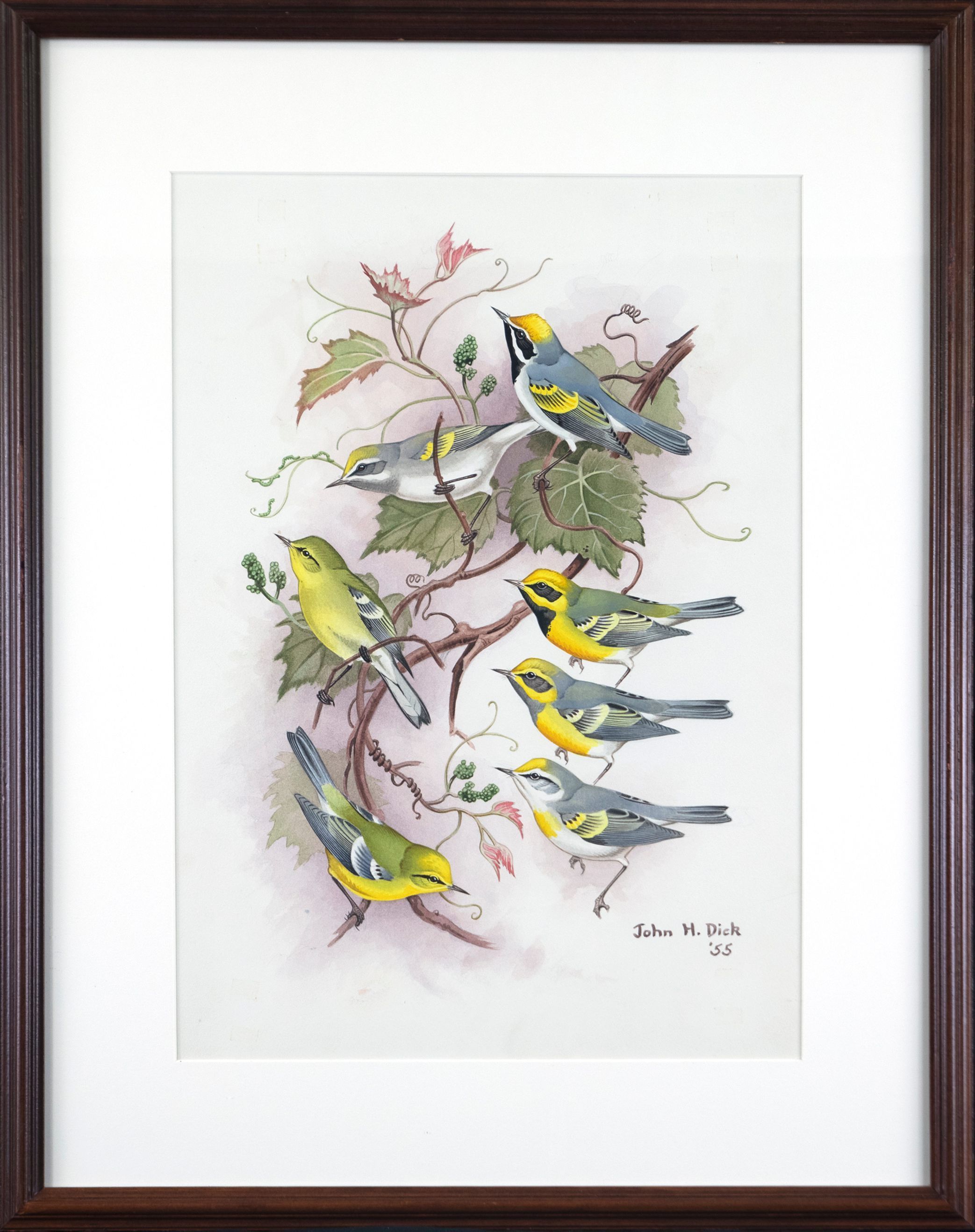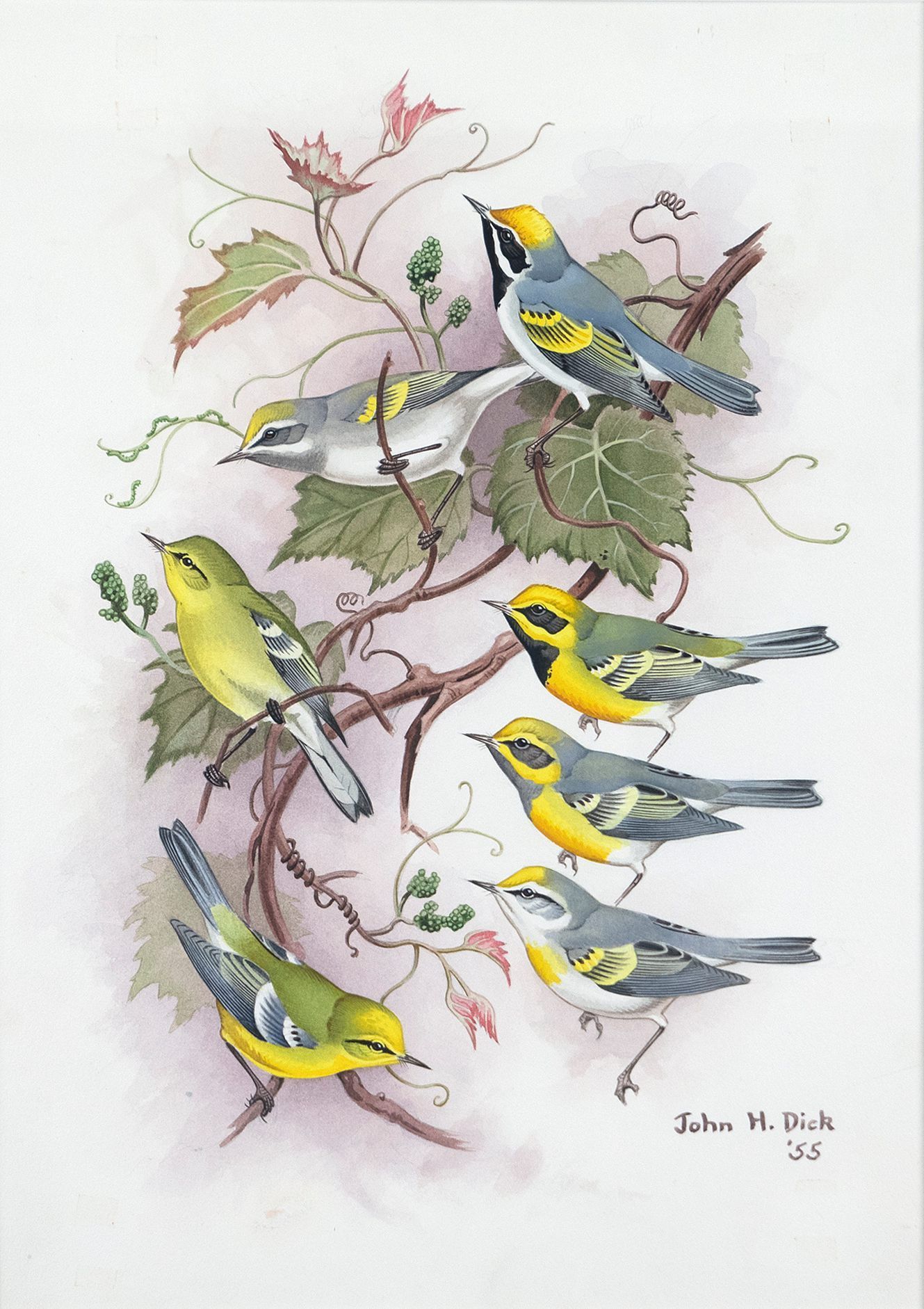Blue-winged and Yellow-winged Warblers by John Henry Dick, watercolorArtwork Details