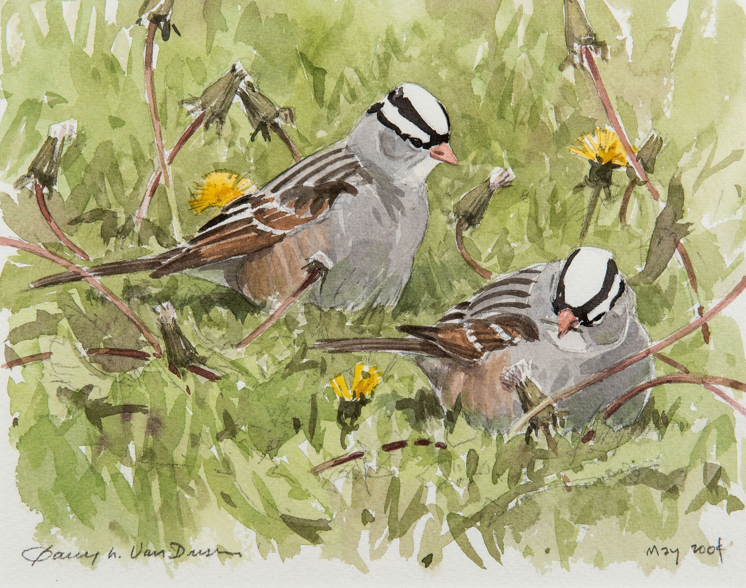 White-crowned Sparrow by Barry Van Dusen, watercolorArtwork Details