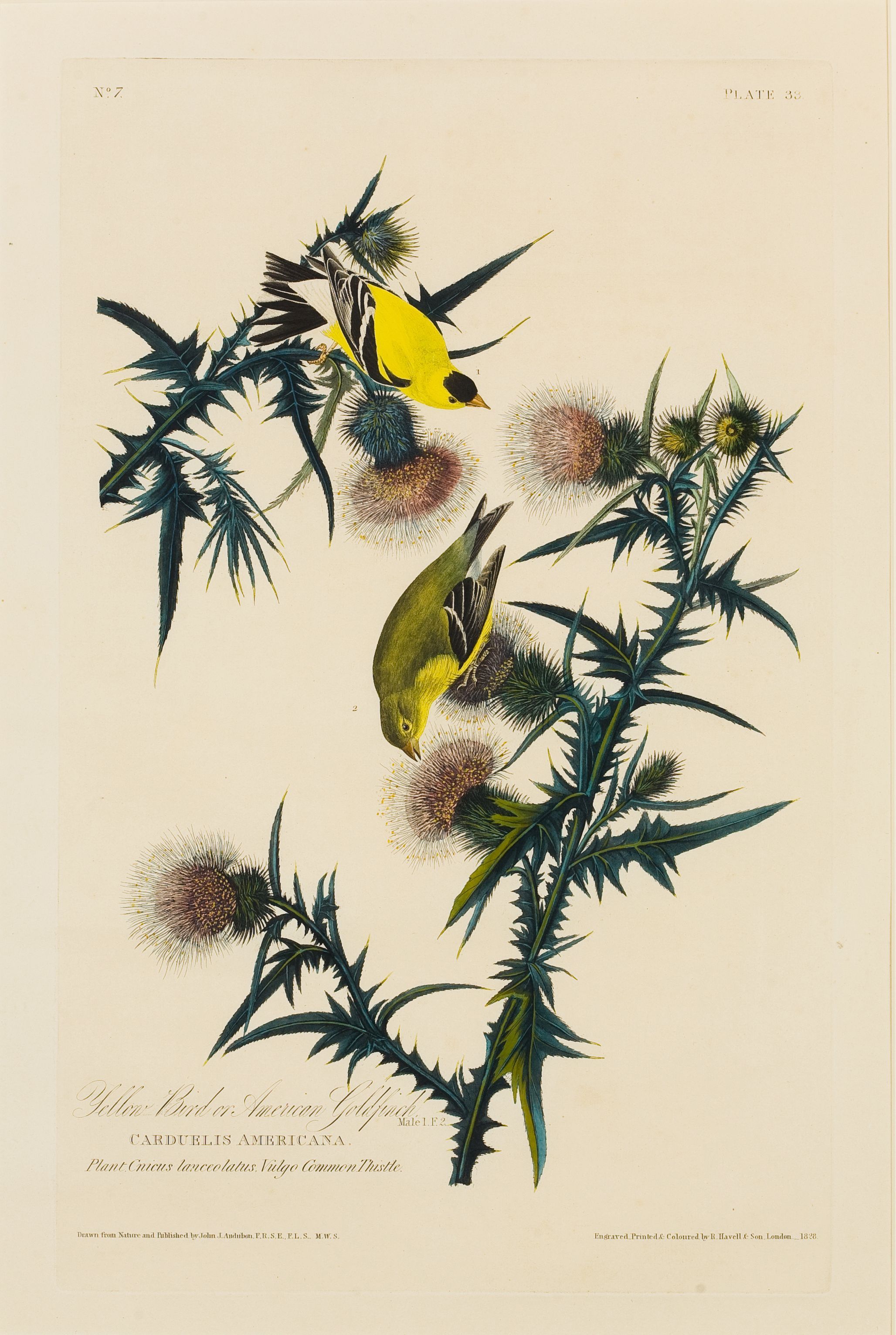 American Goldfinch by John J. Audubon, engraving