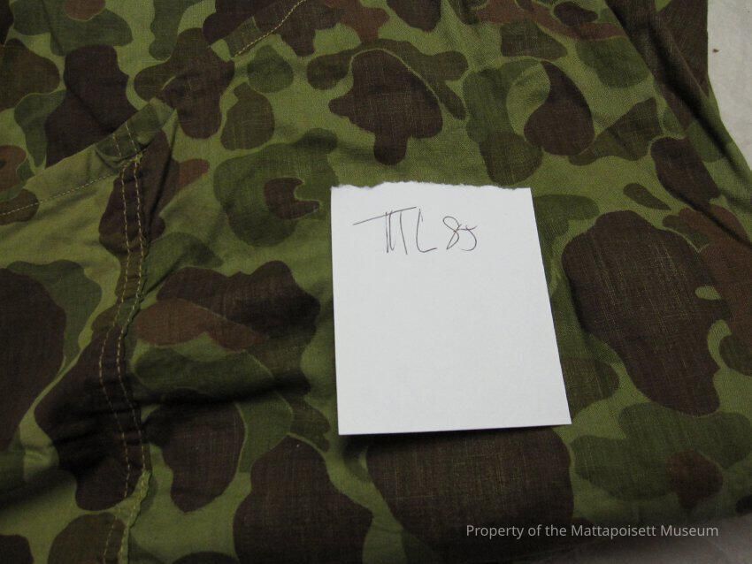 WWII camouflage duffel bag. Belonged to Charles Morgan.Collection