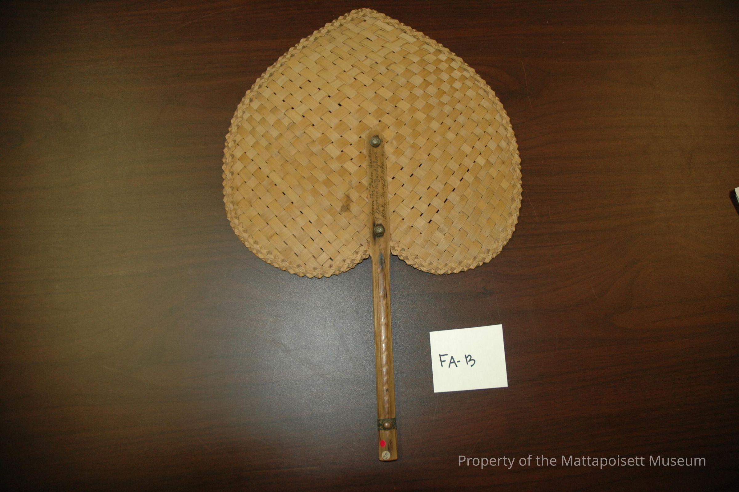 Flat woven palm leaf shaped fan. From Italy.Collection