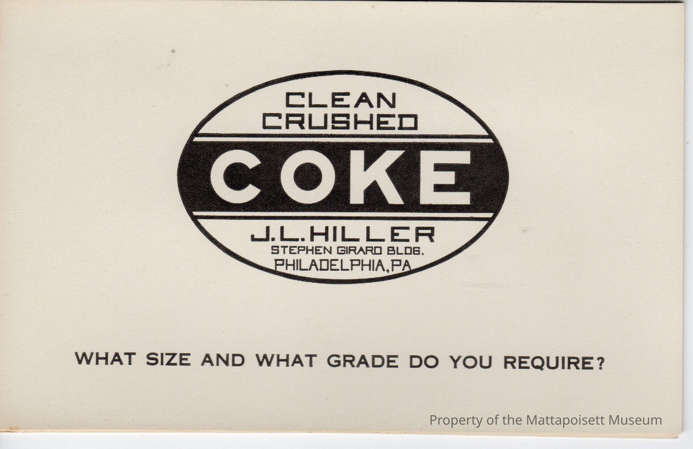Cards used for advertising coal by Joseph L. Hiller. 4 copies.Acquisition