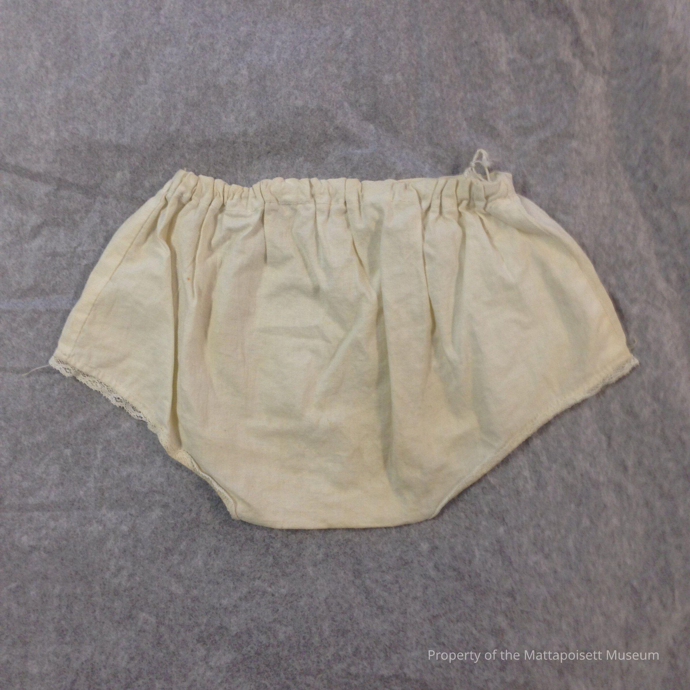 Cloth diaper, elastic waist, lace around legs.Collection