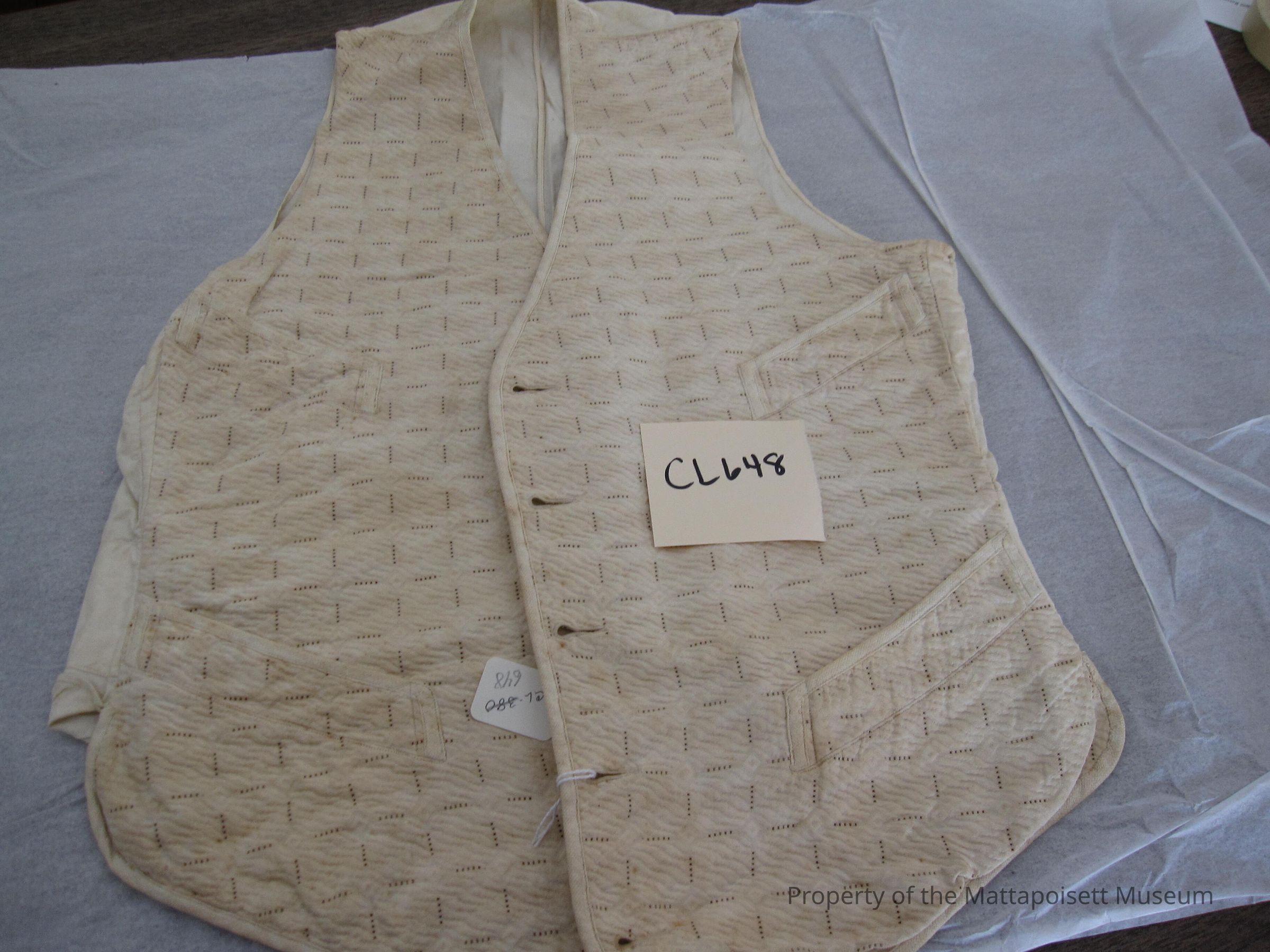 Men's off-white cotton pique vest. Four pockets, four missing buttons.Collection