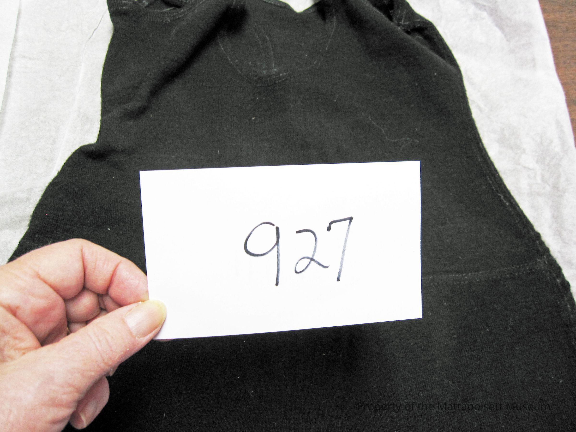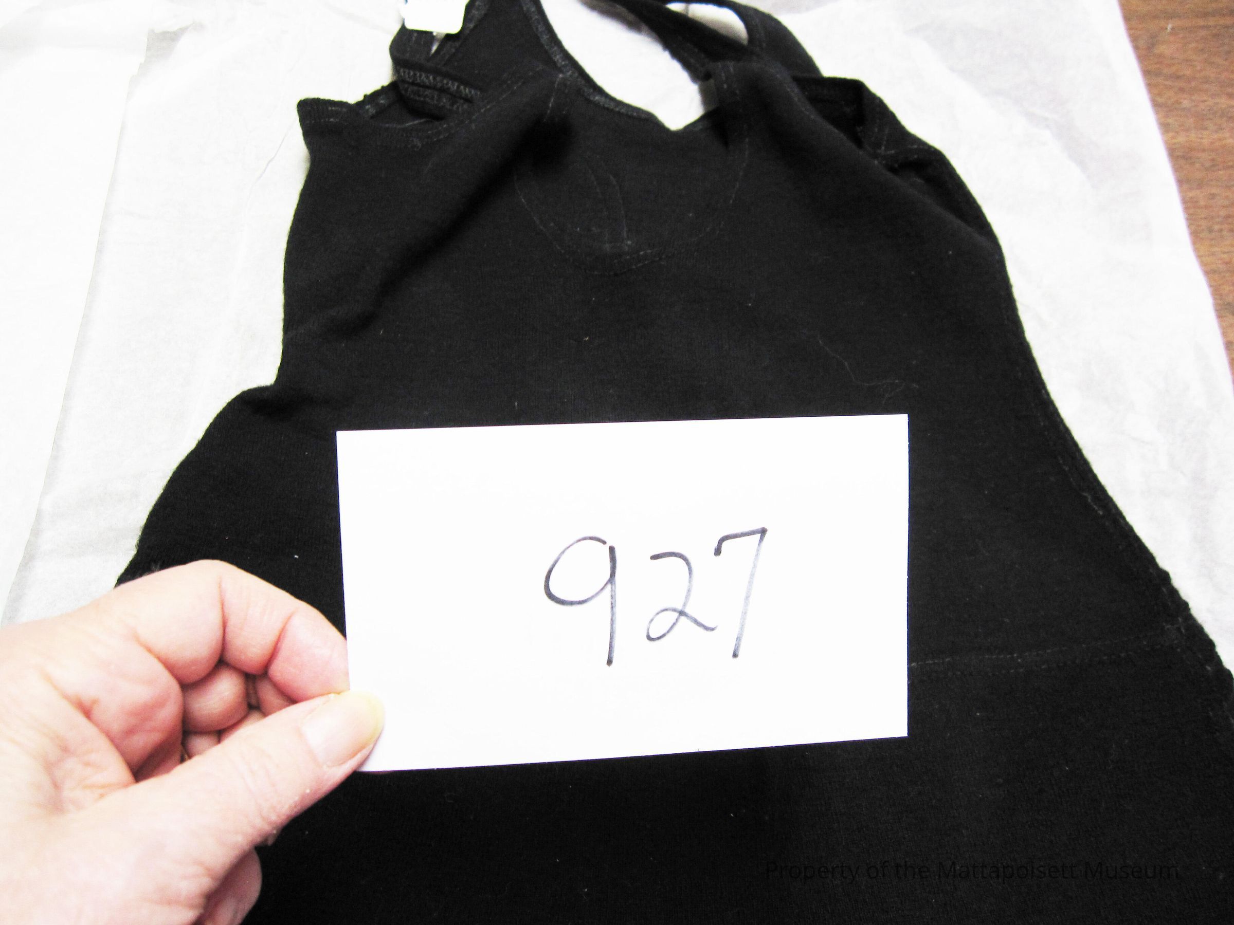 Notes: Notecard: Recieved 09/2006. Bathing suit, black, wool, woman's from 1920's. Decorative stitching on front.