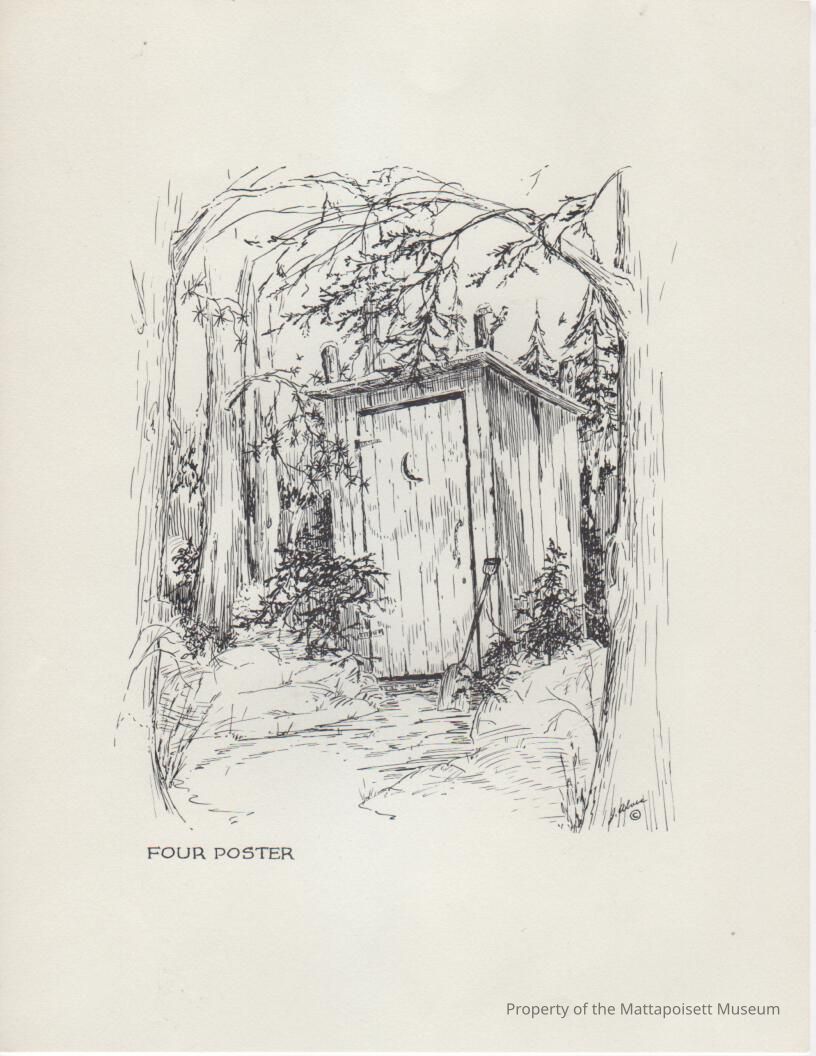 Jospeh Alves print of drawing of an out house in woods.Acquisition