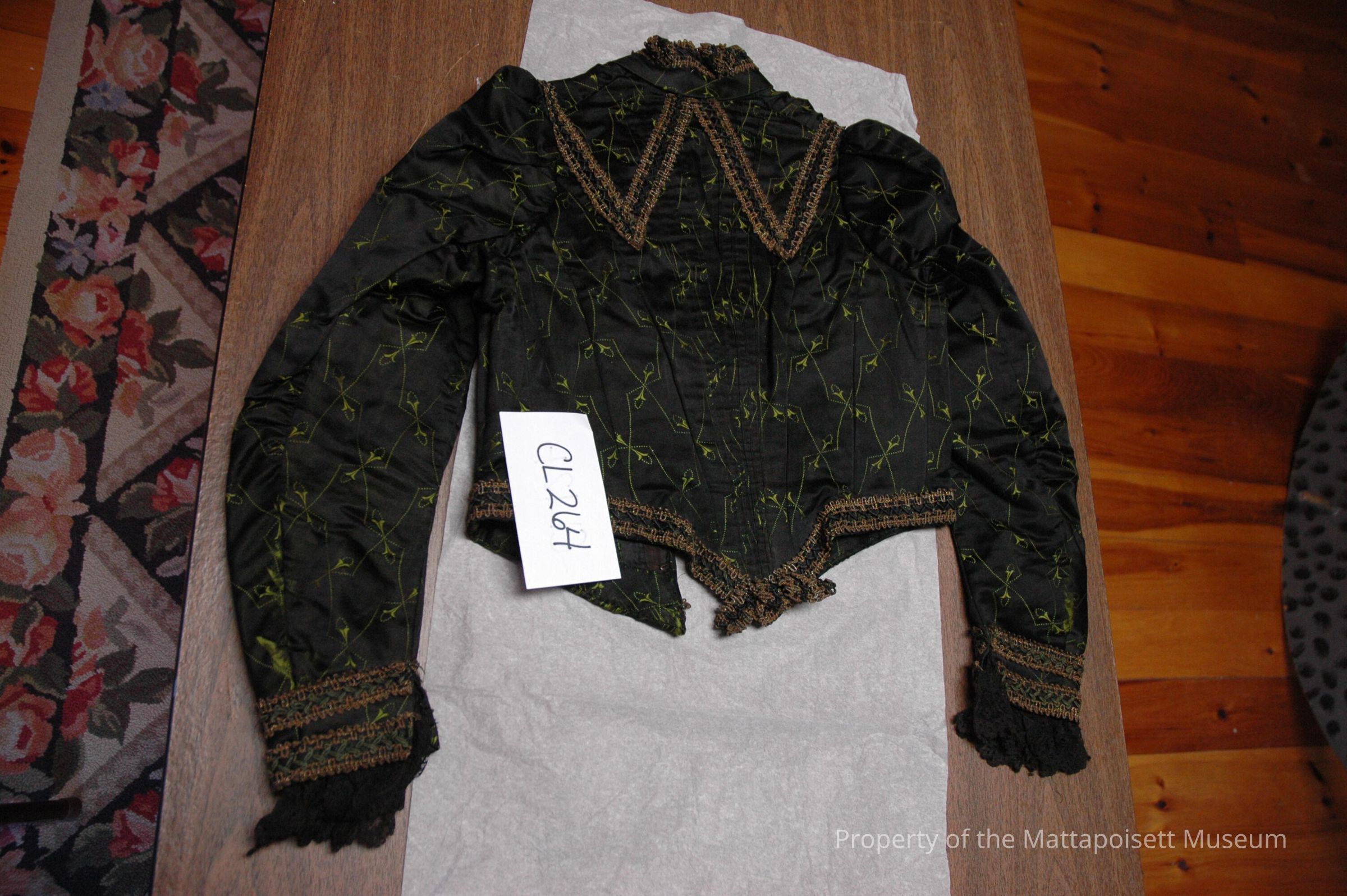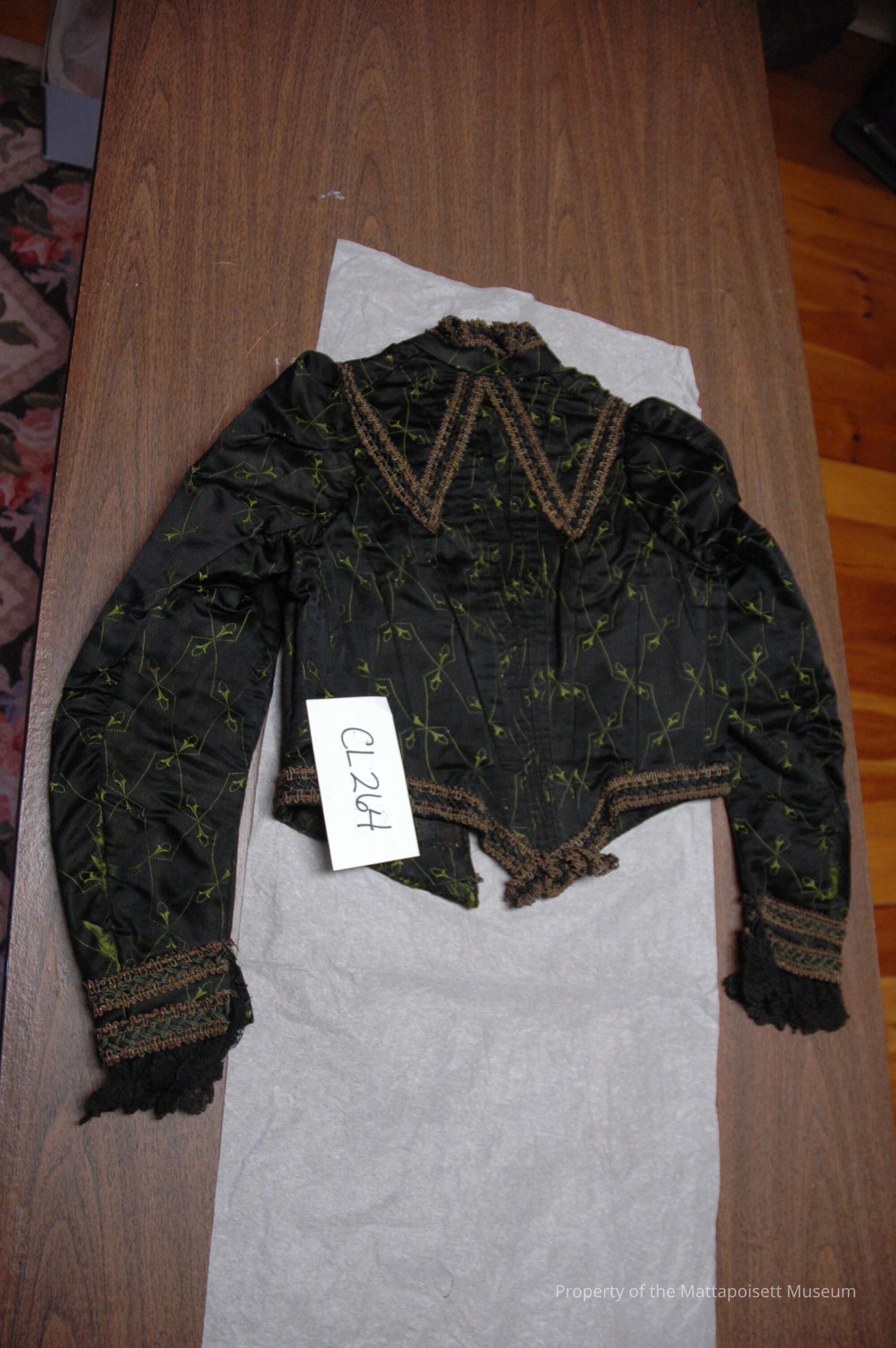 Notes: Notecard: Black silk waist with gold braid, heavily boned.Created By