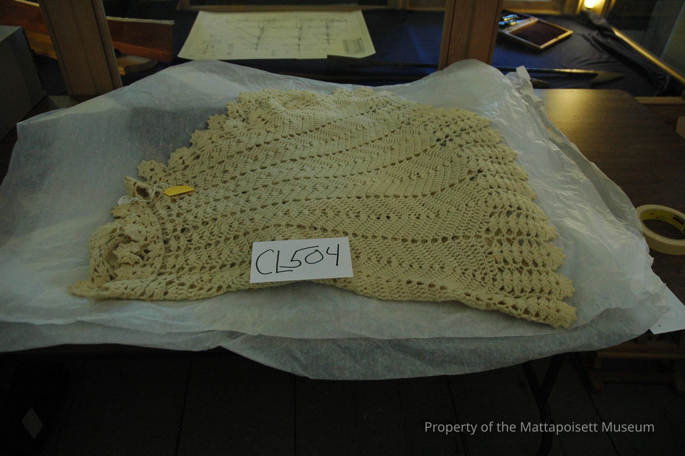 Notes: Notecard: Ecru crocheted wool cape.Created By