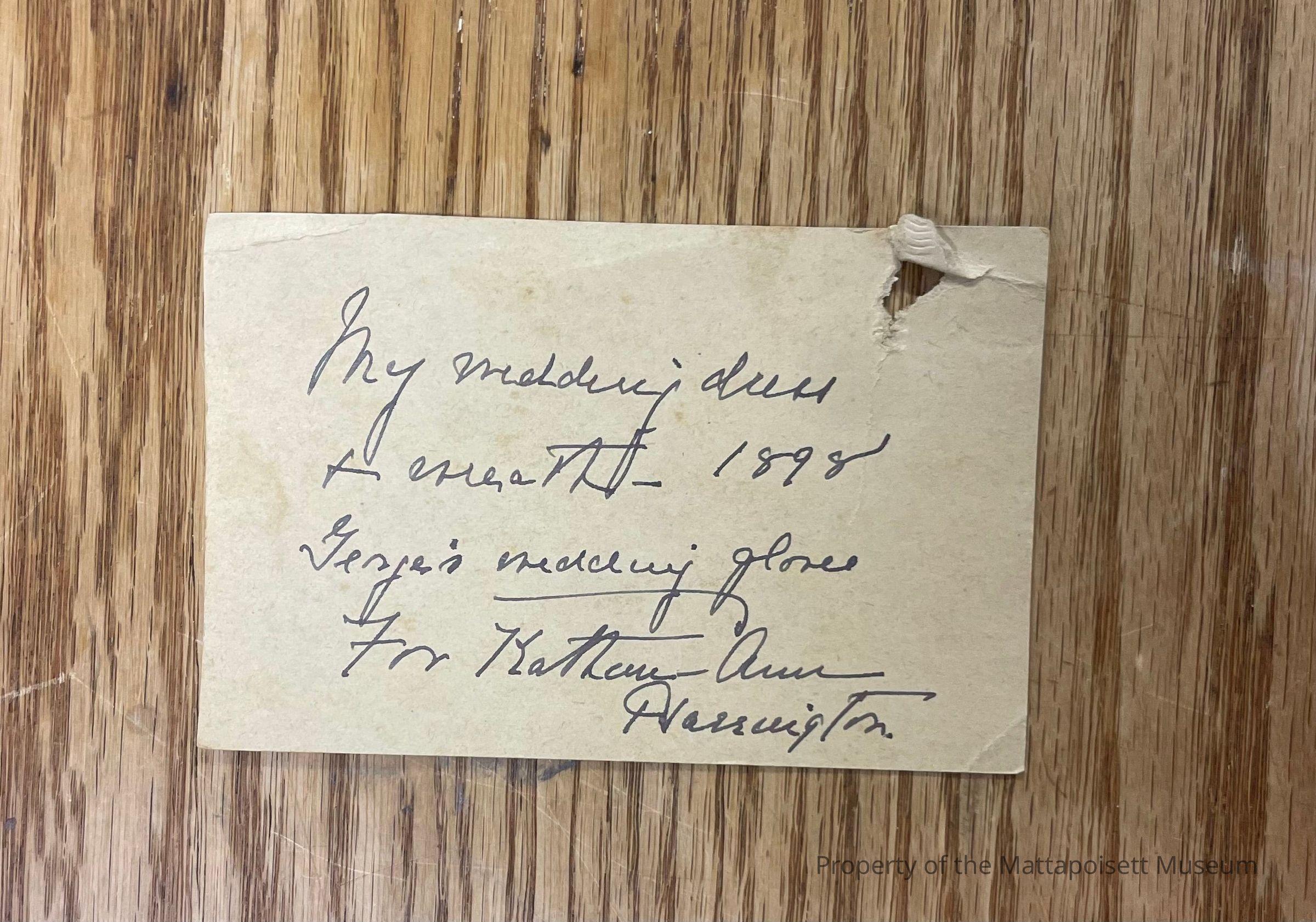 My wedding dress + wreath - 1898. George's wedding gloves. For Kathleen Anne Harrington.