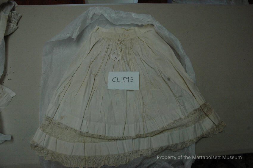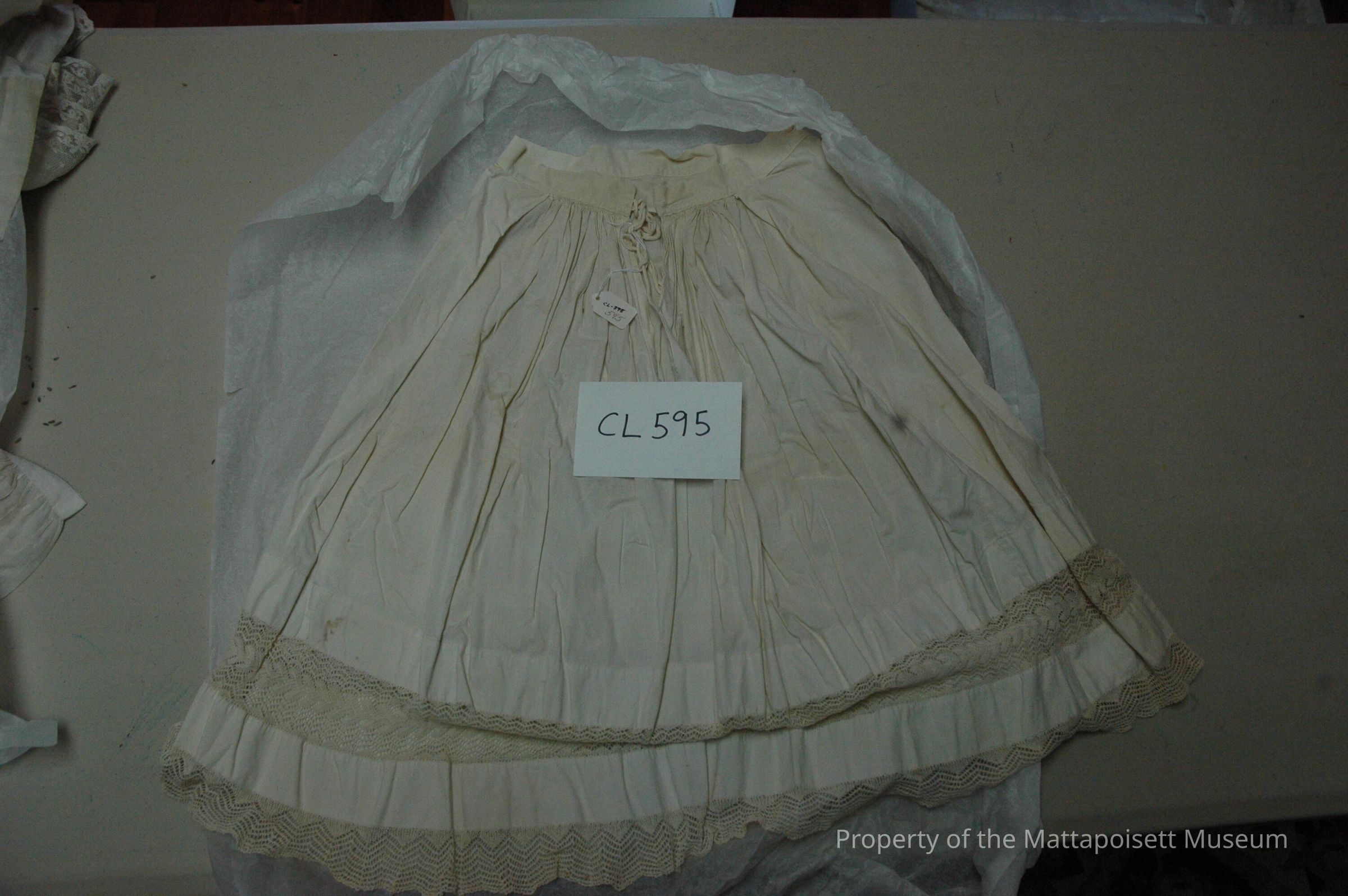 Child's petticoat, crochet at bottom, off-white cotton, ribbon tie.Collection