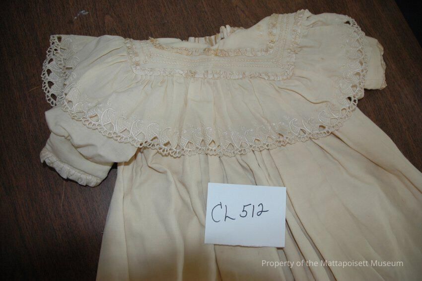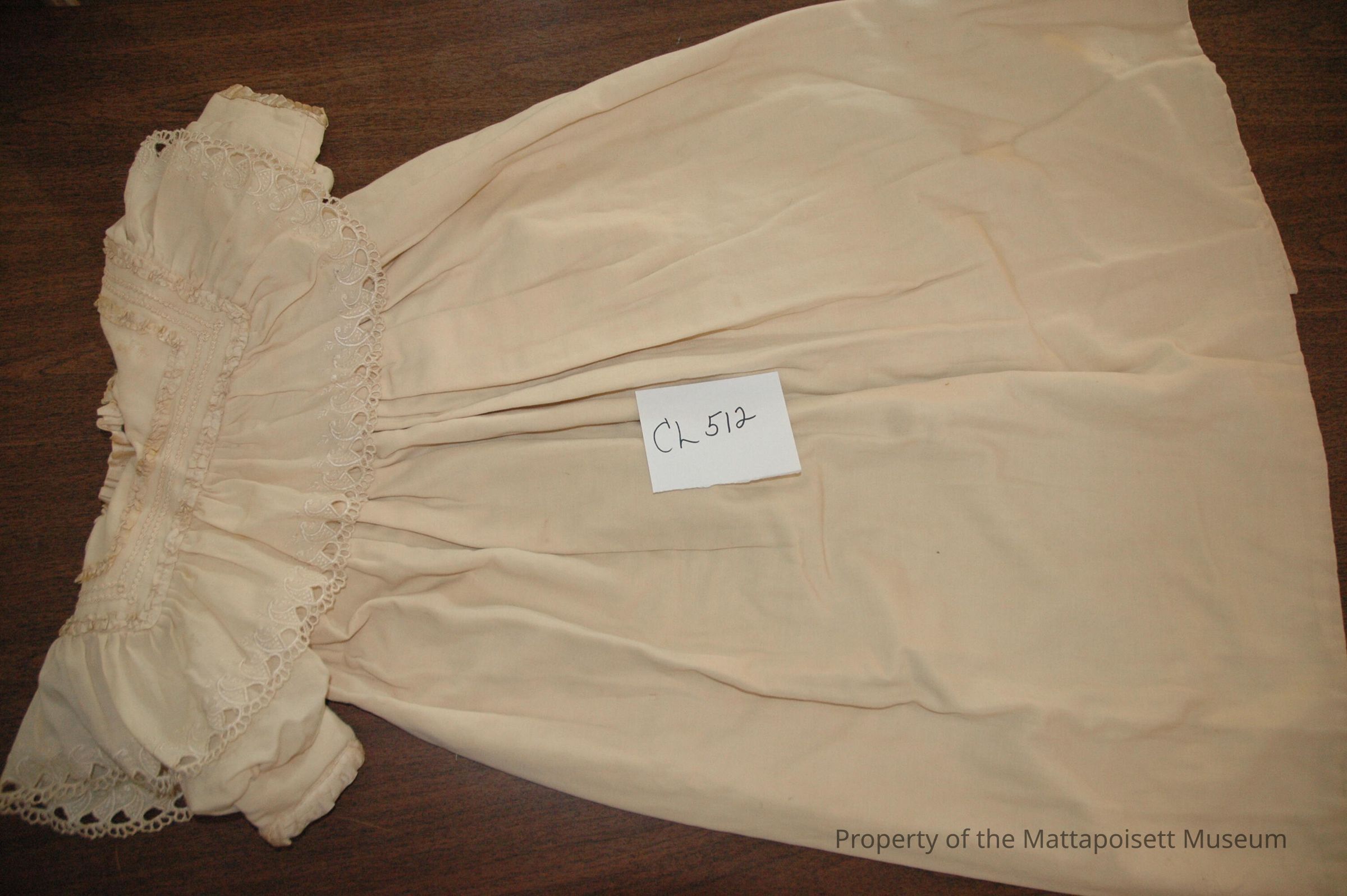 Notes: Notecard: Child's cotton robe with ruffed collar, fancy neck trim.Created By