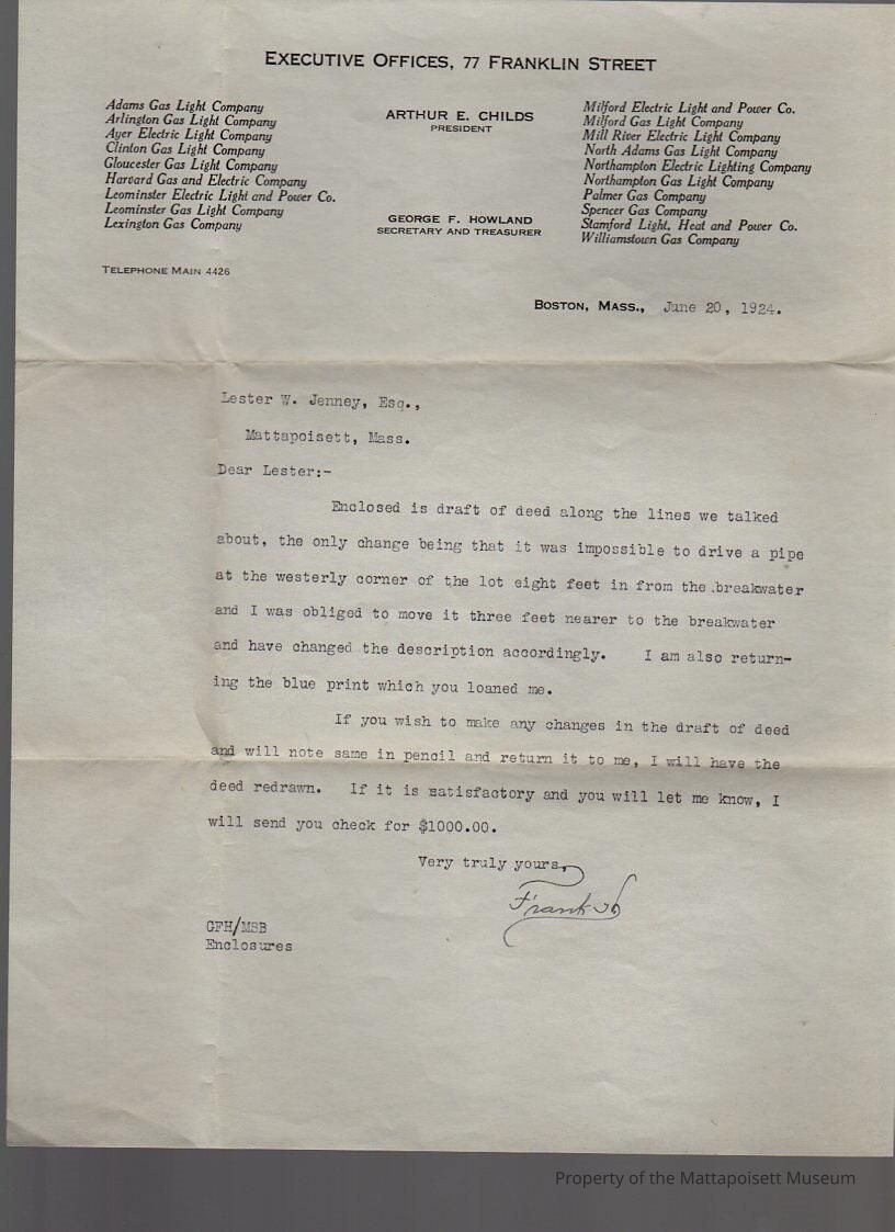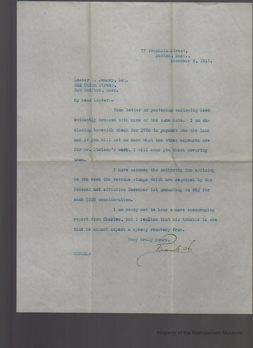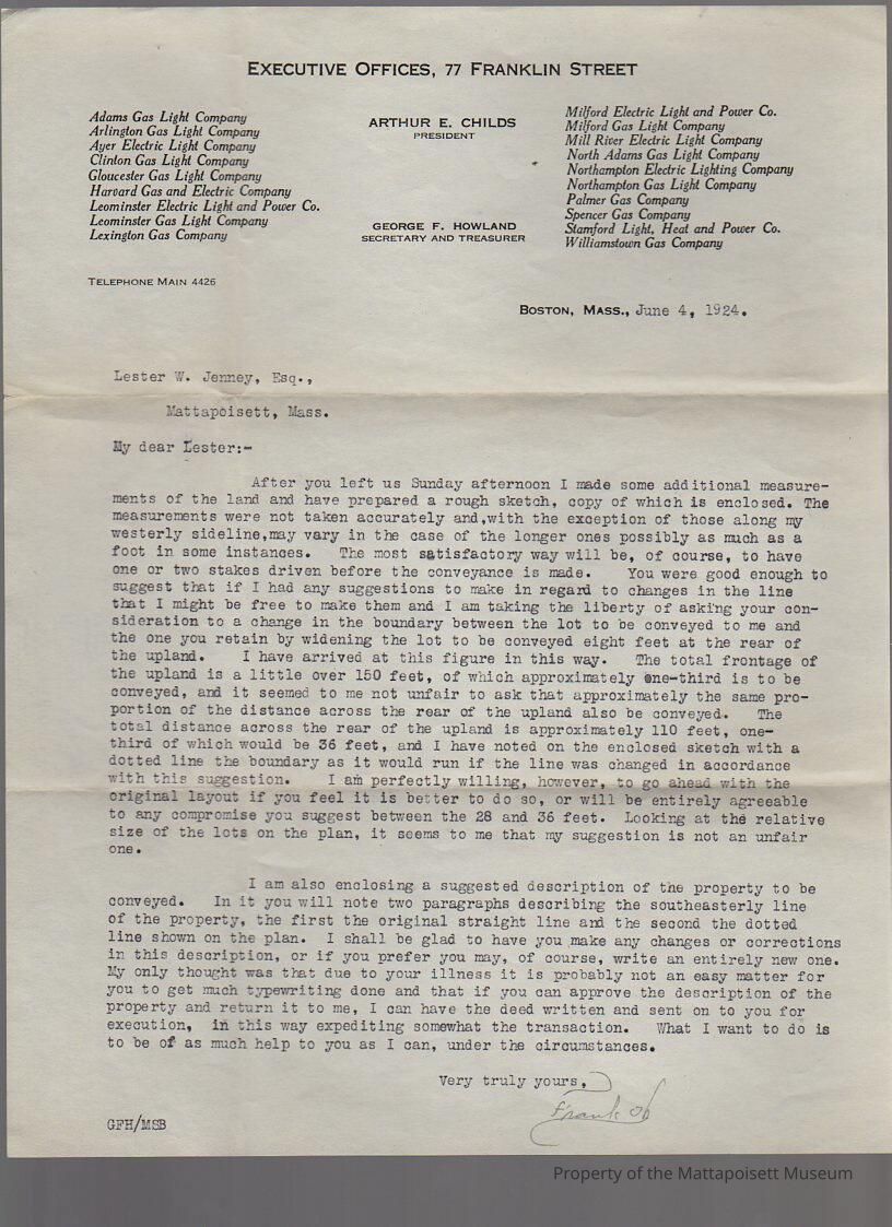 Letters to Lester W. Jenney from Frank. Exchange of property.Collection