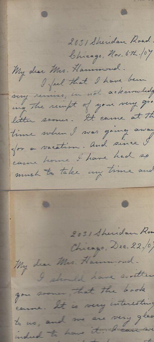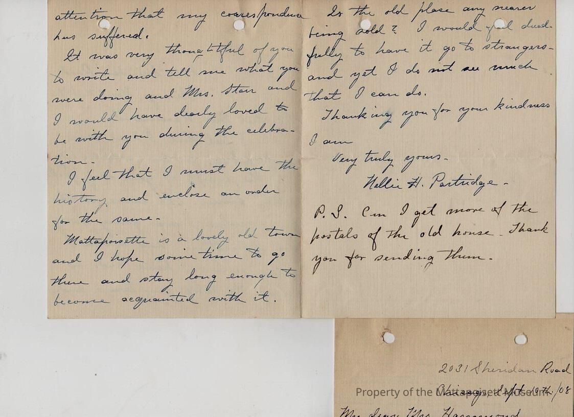 Letters to Mrs. Hammond from Nellie H. Partridge in Chicago.Collection