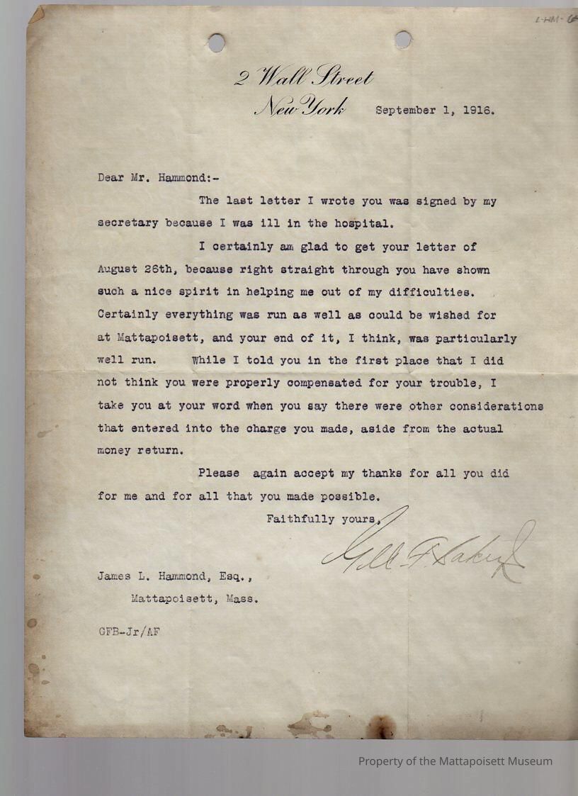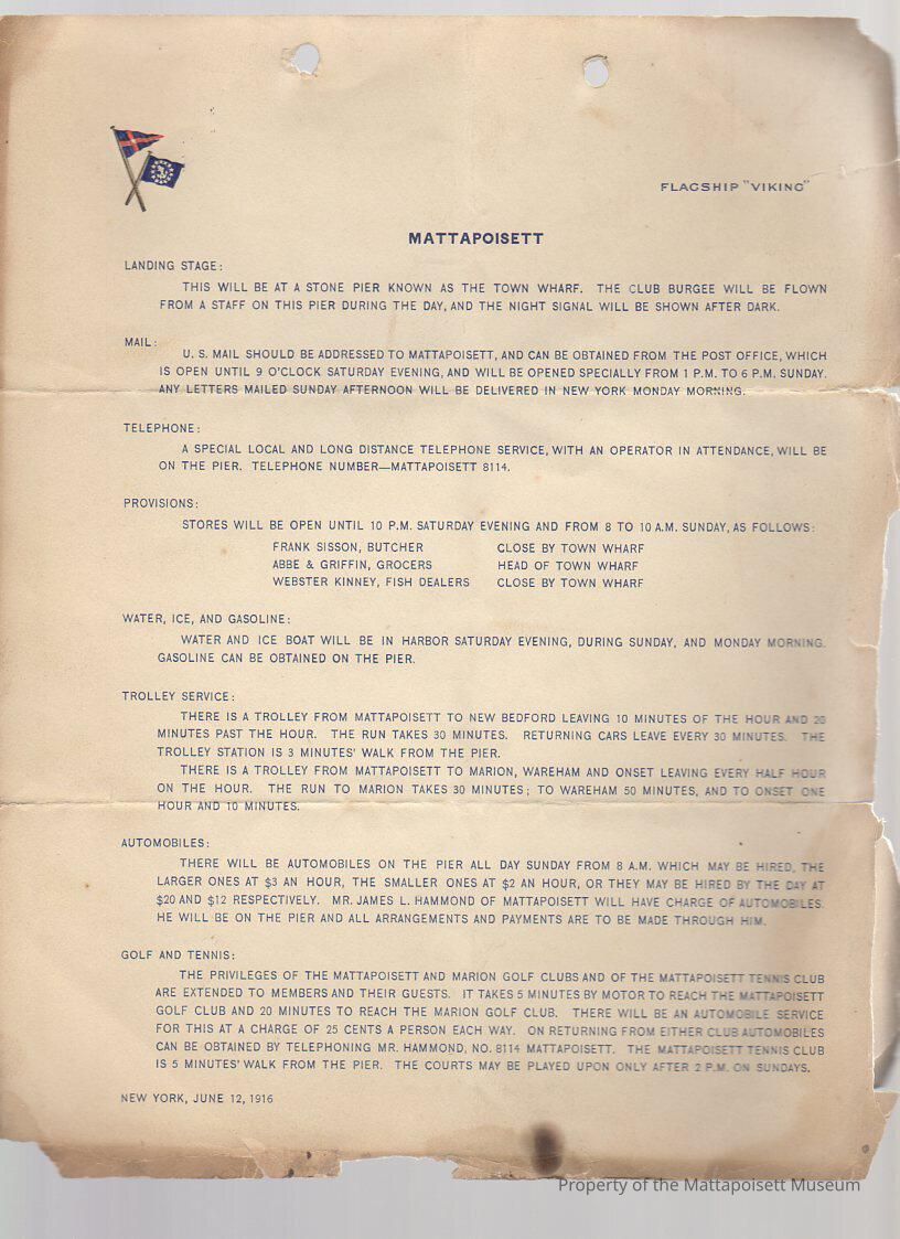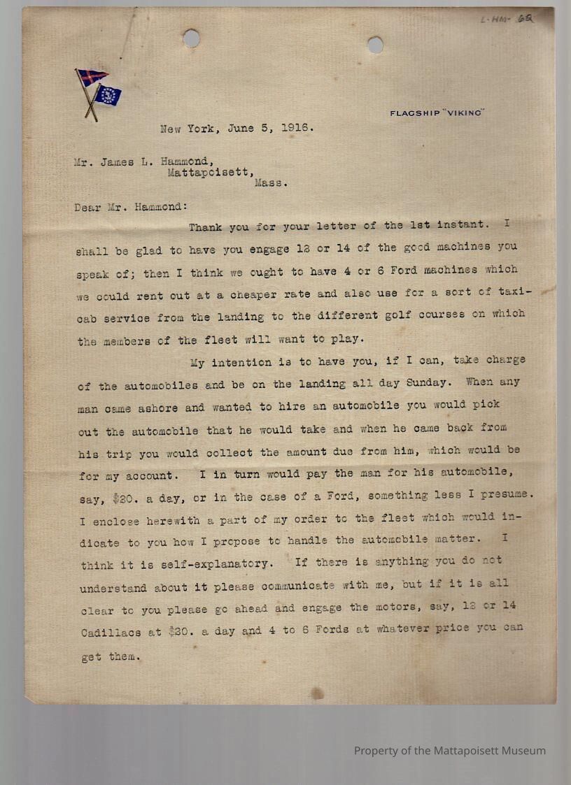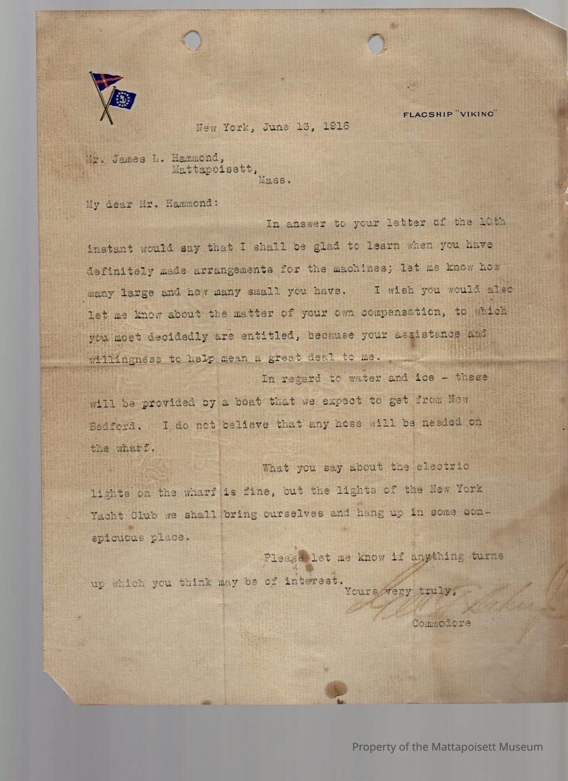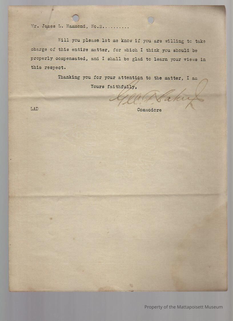 Letters to Mr. James L. Hammond from George A. Baker, Commodore, Flagship "Viking".Collection