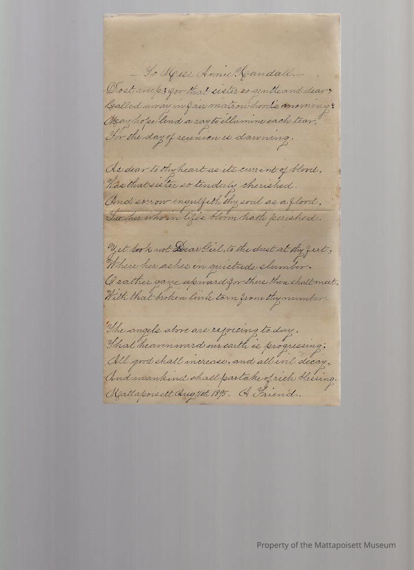 Letter/Poem to Miss Annie Randall from A Friend.Collection