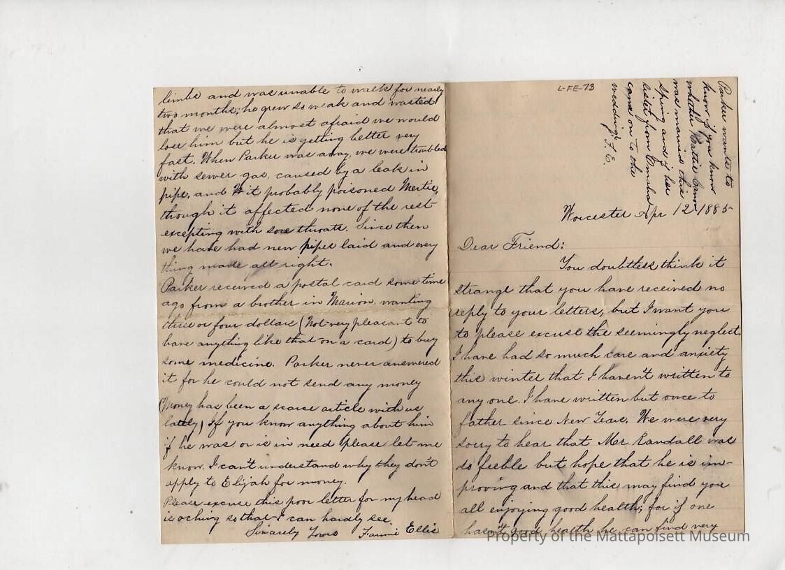 Letter to "Dear Friend" from Fannie EllisCollection