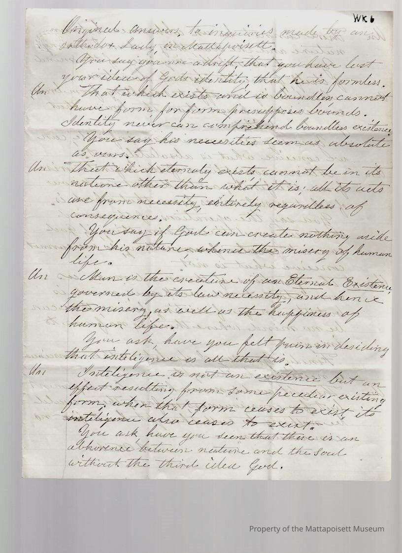 Document labeled "Original Answers to Inquiries" signed A. WeeksCollection