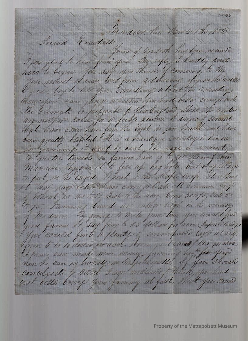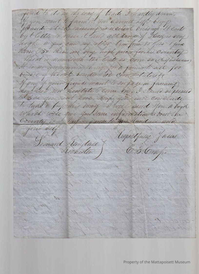 Letter to Leonard Randall from C. B. Crapo.Collection