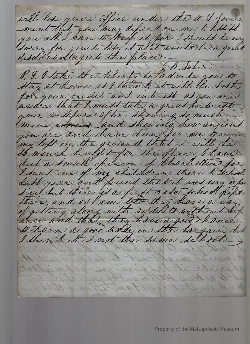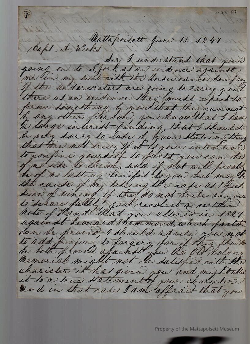 Letter to Capt. A. Weeks from J. R. Baker.Collection
