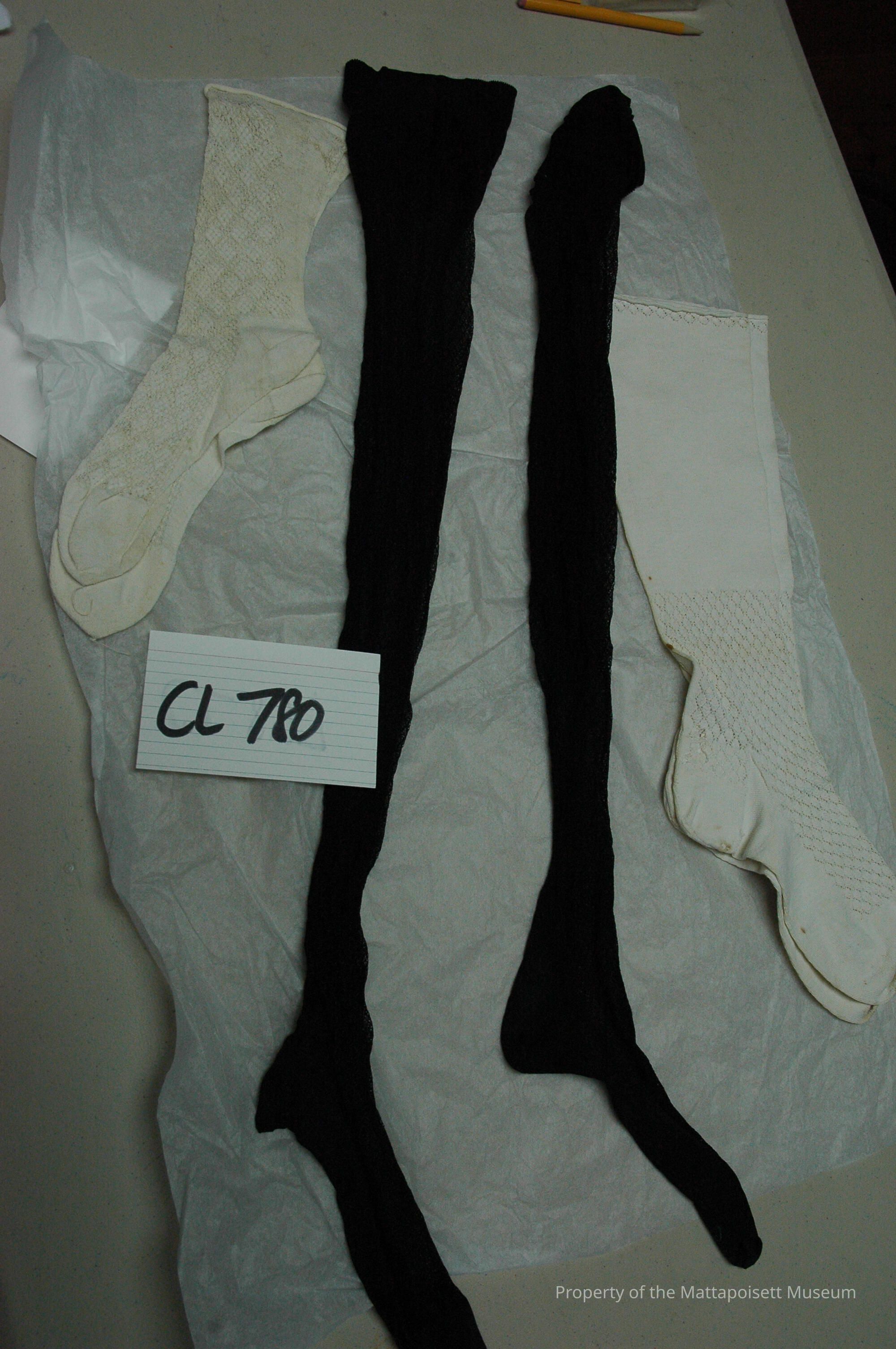 Notes: Notecard: Assorted adult hose, pair long black, pair beige knee high, pair short beige.