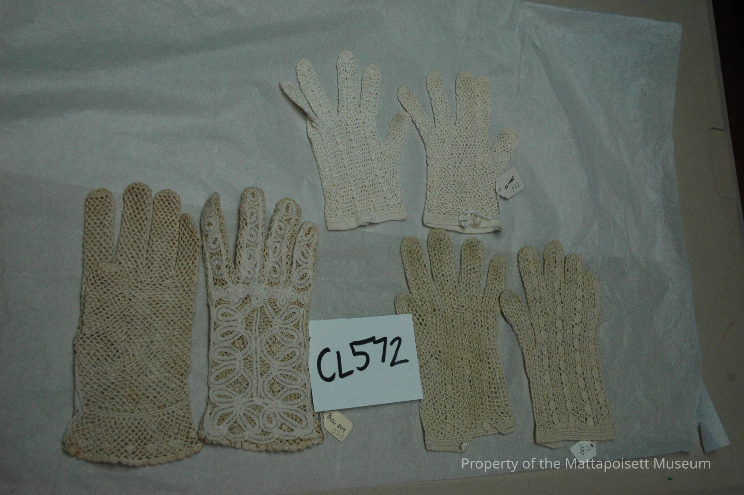 Notes: Notecard: Three pair cotton crochet gloves.