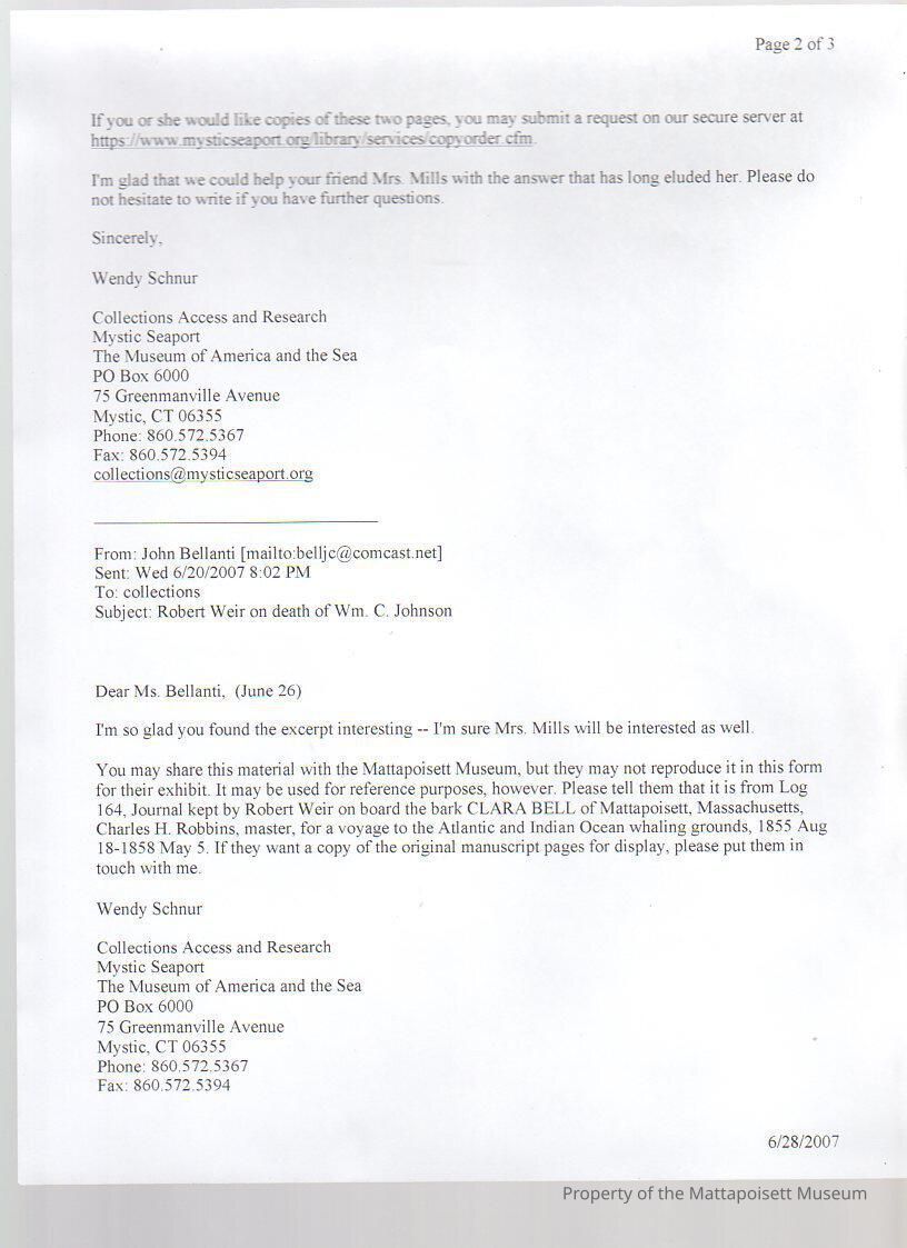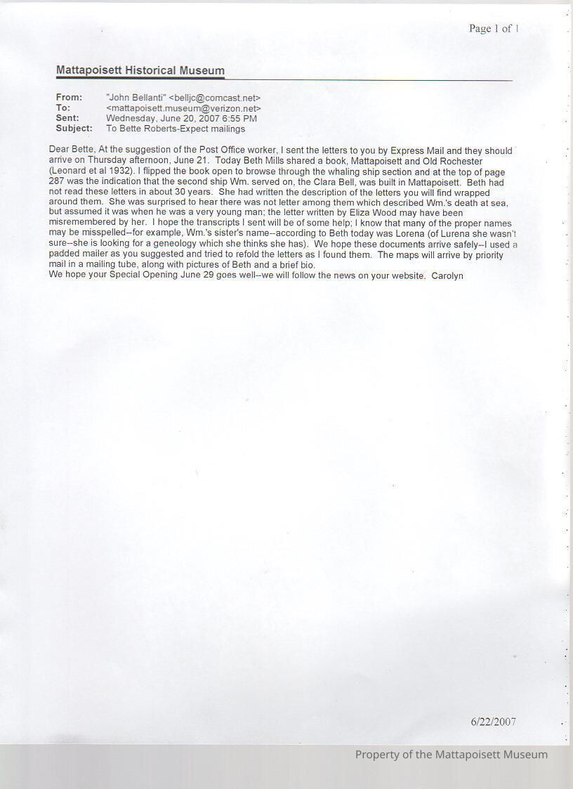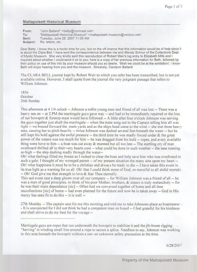Email messages between Ms. Bellatini, Wendy Schnur and Bette Roberts about Bark Clara Bell.Collection