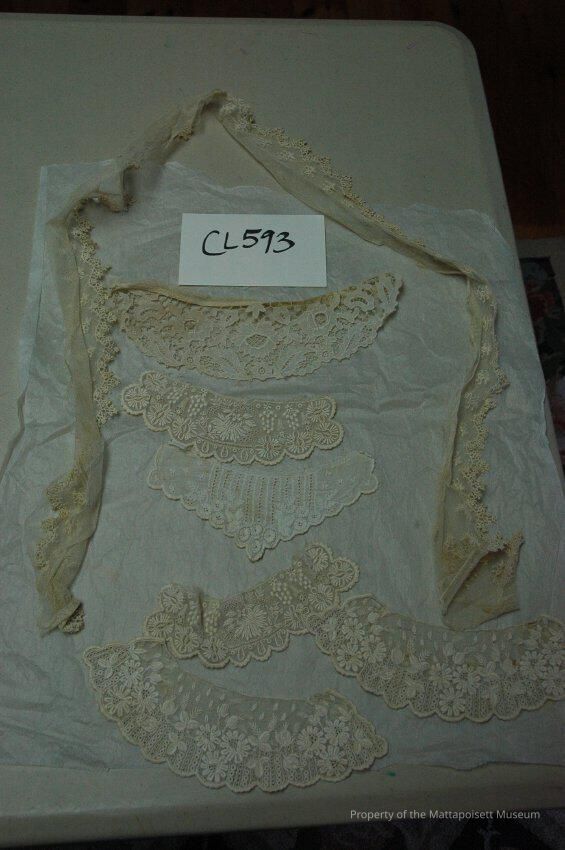 Seven samples of ecru lace. Various lengths and widths.Collection