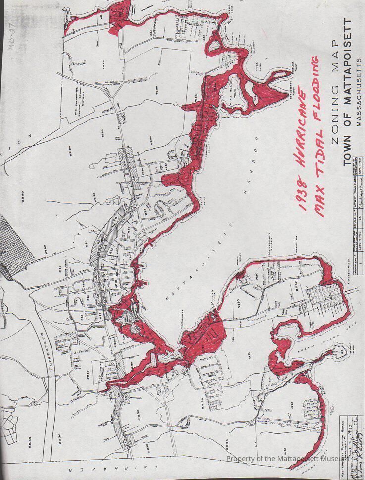 1938 Hurricane Max Tidal Flooding line. Hand-drawn on zoning map of the Town of MattaposiettCollection