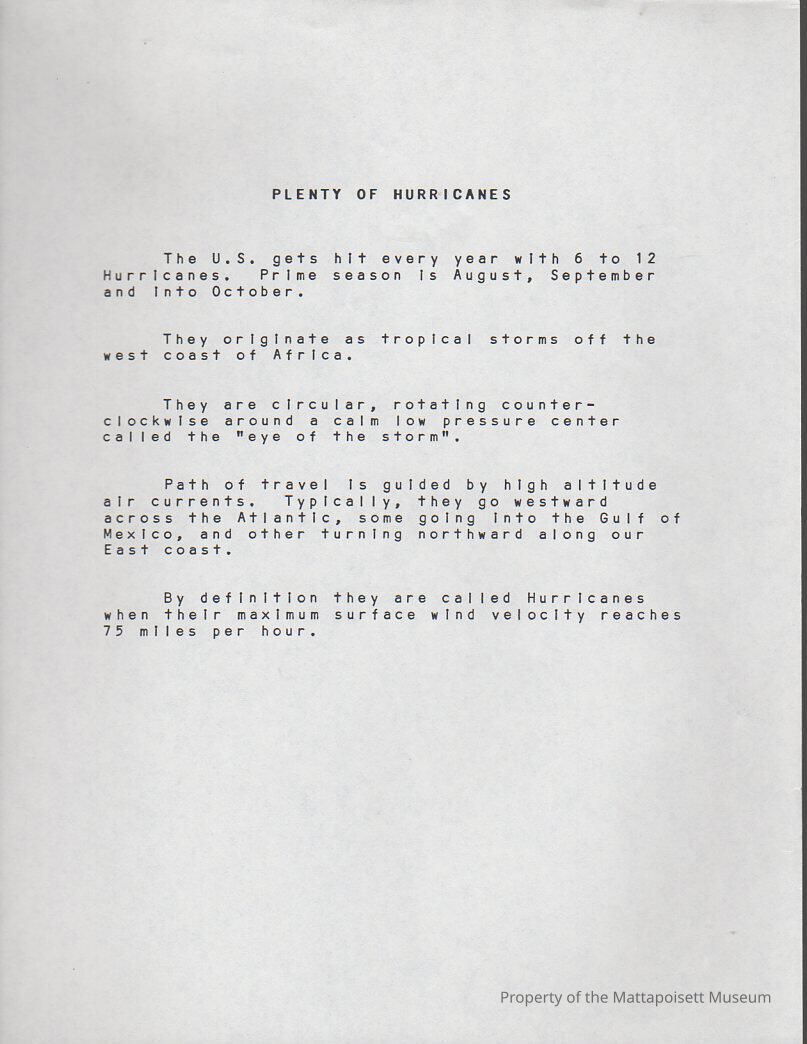 "Plenty of Hurricanes" describing origination of hurricanes.Collection