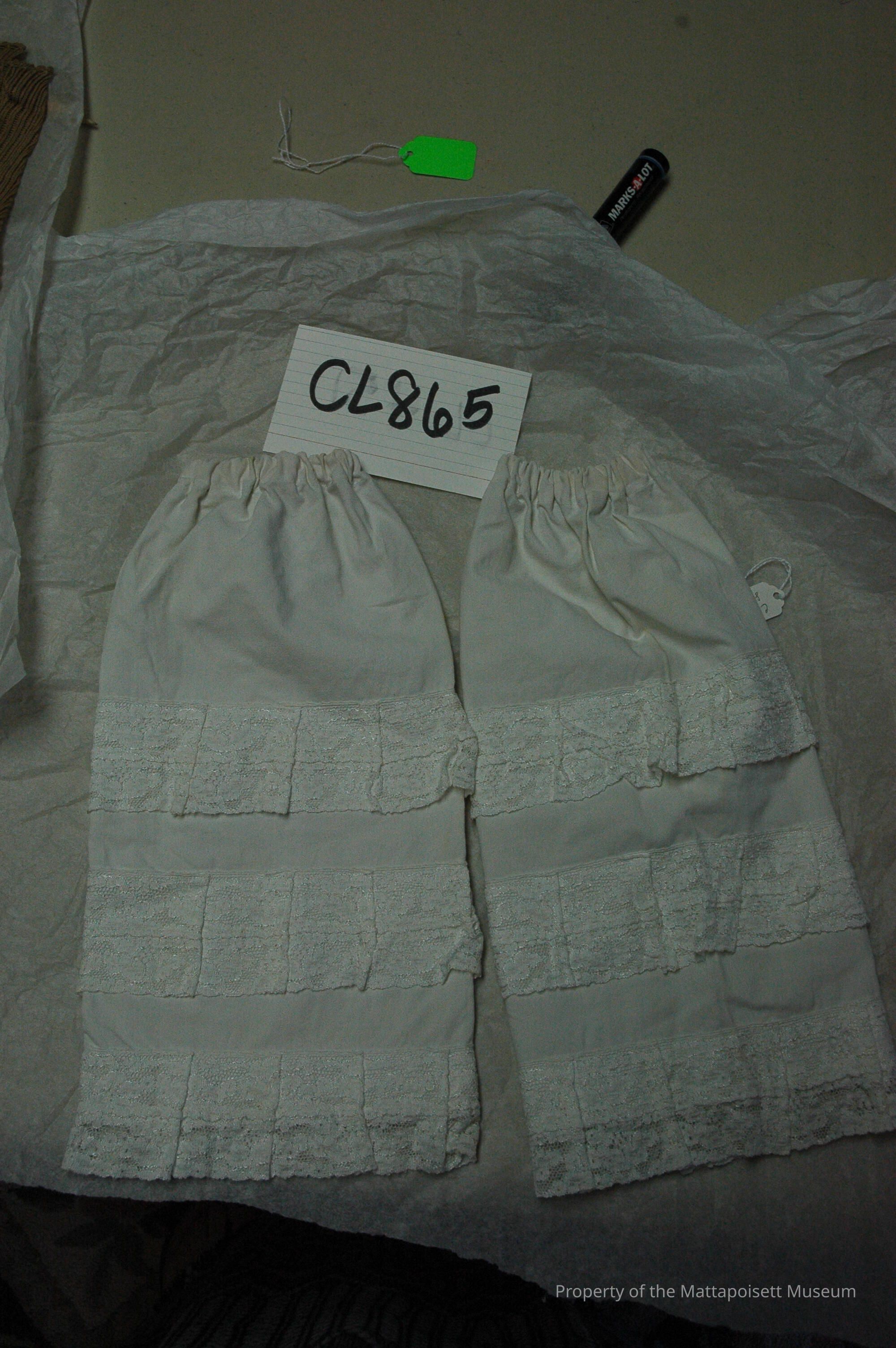 Notes: Notecard: White pair bloomers. Child's, three rows of lace.